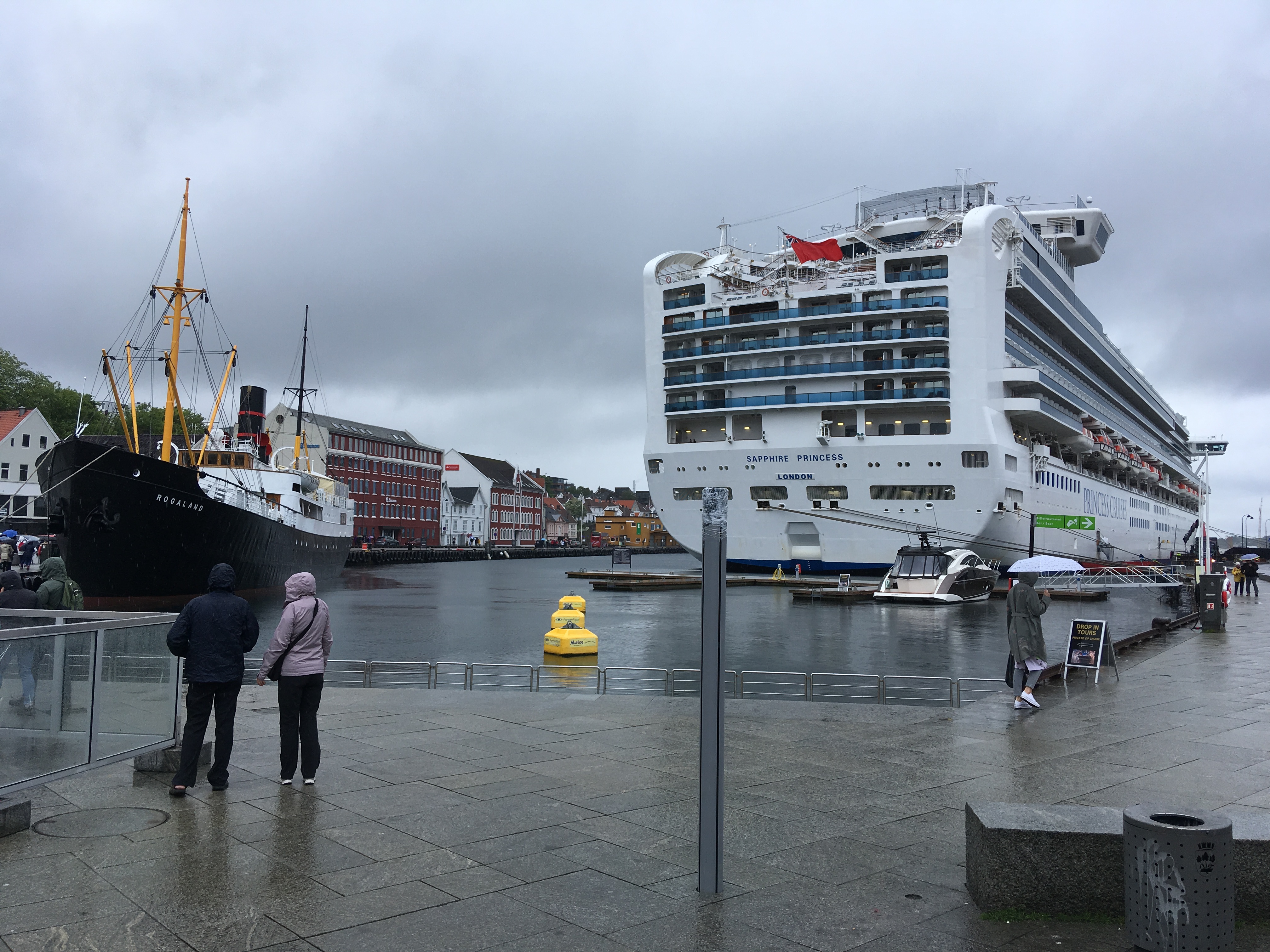 Leider hat Petrus seine Pforten geöffnet und so stehen wir vor der Frage: Weiterfahren oder noch einmal in die Stadt. Wir entschließen uns zu einem Besuch des Lysebotn-Erdölmuseums! Also nach dem Frühstück – heute mit frischen Brötchen – auf zu den öffentlichen Verkehrsmitteln. Die Bushaltestelle ist nah aber … als wir „einchecken“ wollen werden wir mit „Händen und Füßen“ vom Busfahrer darüber informiert, dass es keine Barzahlung gibt. Er hat ein Herz für unwissende „Leute vom Land“ und läßt uns „schwarz“ mitfahren.