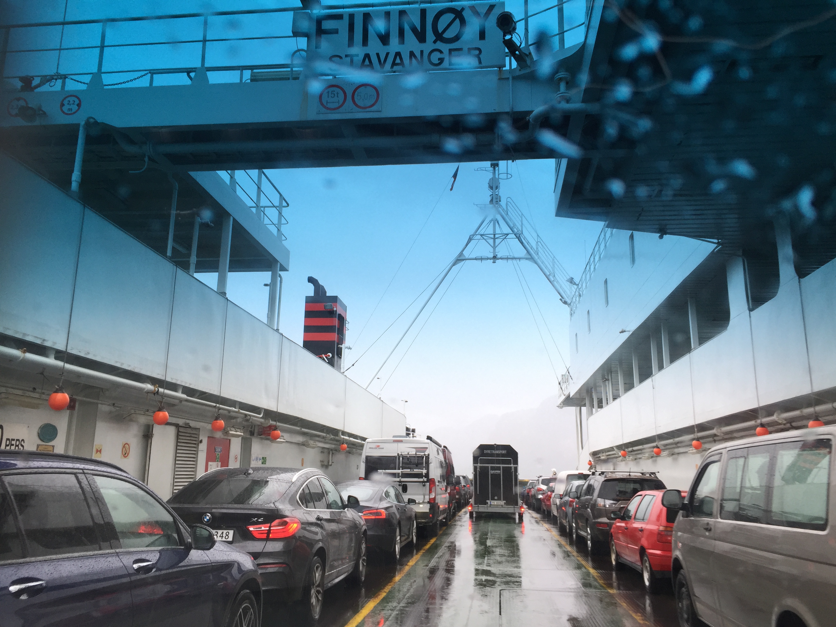 Im Hafen liegen zwei Kreuzfahrer und entsprechend viele Passagiere strömen durch die Stadt. Im Erdölmuseum ist es jedoch verhältnismäßig ruhig. Wir können einen Besuch des Museums wirklich empfehlen, es ist interessant und verständlich gestaltet und auch Kinder sind dort gut aufgehoben. Es werden auch m.E. sehr neutral die erheblichen Nachteile der fossilen Brennstoffe sowohl bezüglich der Gewinnung als auch der Weiterverarbeitung und Verbrennung sehr deutlich und warnend angesprochen. Für die Rückfahrt kaufen wir dann ordnungsgemäß für 7,40€ pro Person zwei Tickets am Busbahnhof. Unser nächstes Ziel ist der Preikestolen. Nach einer kurzen Fährfahrt über den Lysefjord übernachten wir am Parkplatz des Lysebotn-Centers.