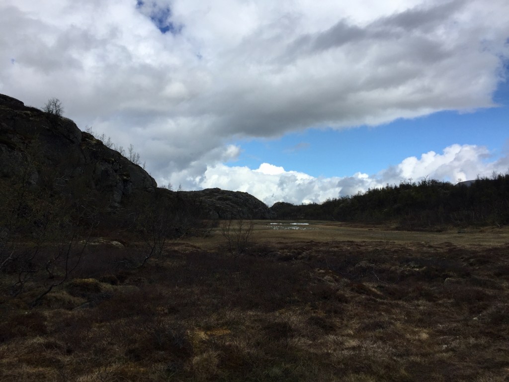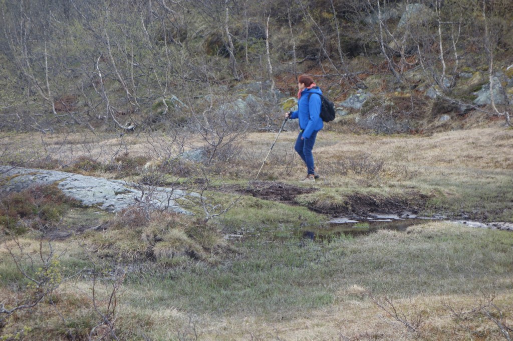 Auch heute morgen verheißt Wetteronline kein gutes Wetter, aber wir wagen es dennoch mit Regenjacken bewaffnet ins Vidda. Die Landschaft ist ursprünglich und bietet schöne Ausblicke. Als sich dann jedoch der Himmel zuzieht, sich nur noch dunkle Wolken über uns zeigen und es auch noch beginnt zu regnen, brechen wir etwas enttäuscht unser Wanderung ab. Eine gute Entscheidung, denn als wir bei Bimo eintreffen beginnt es heftig zu regnen.