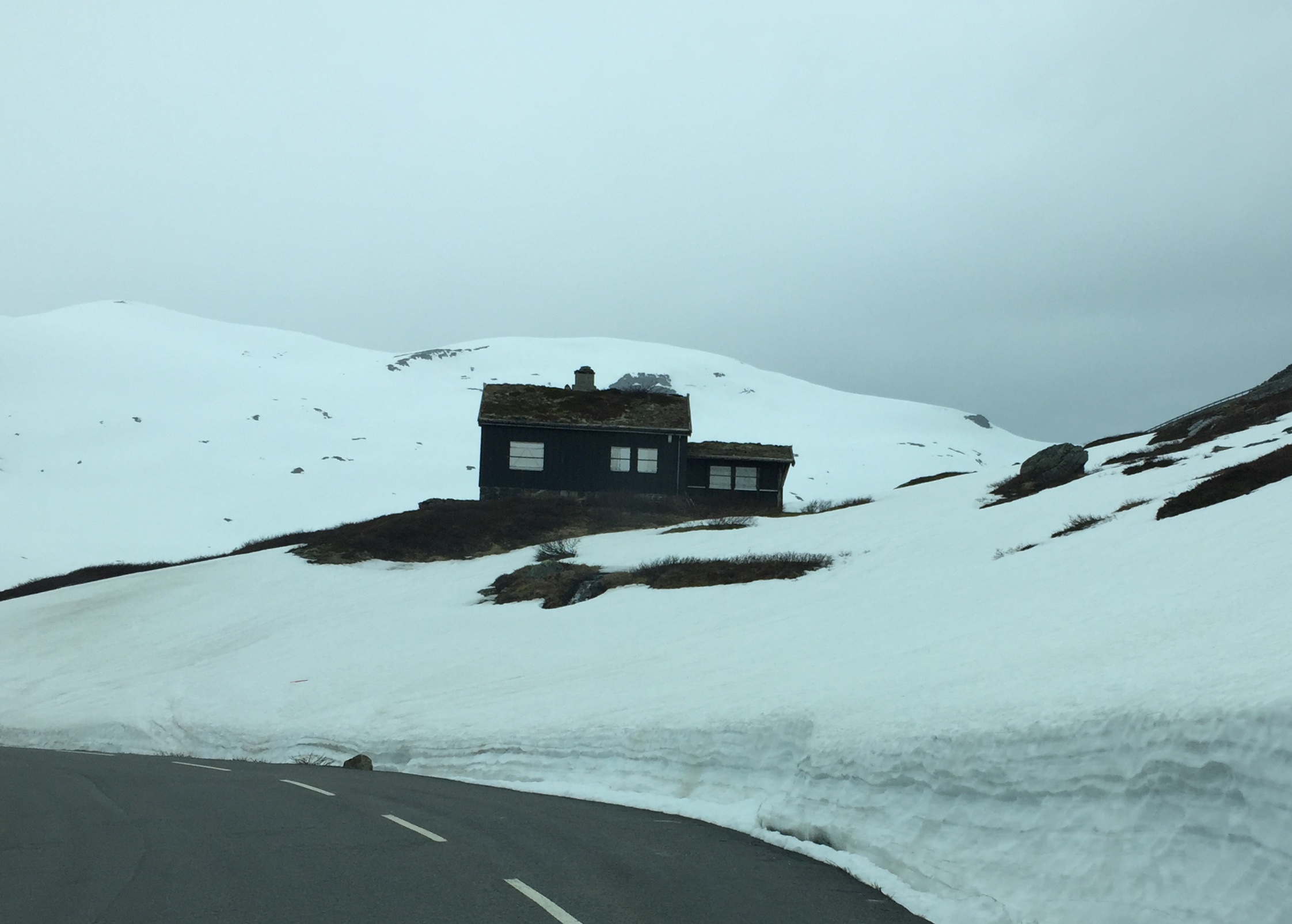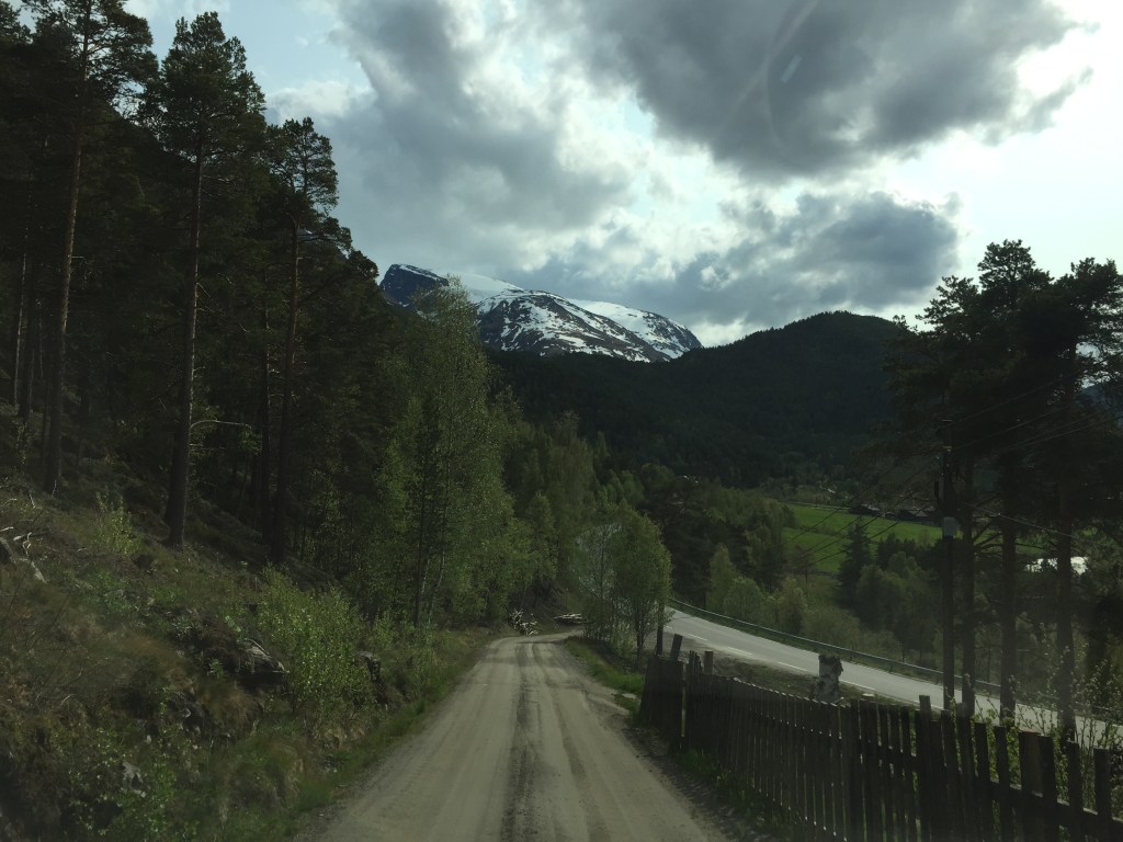 In der Juvaszhytta fragen wir nach, ob die Möglichkeit besteht auf dem Parkplatz zu übernachten, aber die Hüttenwirtin rät uns, mit Blick auf die schlechte Wetterprognose, zur Rückfahrt ins Tal. Also fahren wir hinunter bis auf 1400m und übernachten auf einem Teilstück der alten Bergstraße.