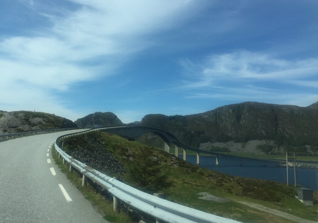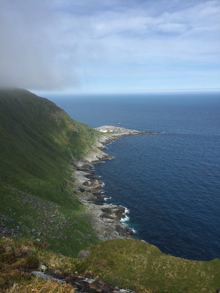 Das Display meines Handys ist zersplittert, also besuchen wir erst einmal den örtlichen Handyshop von Maloy. Zurück geht es durch den kleinen gemütlichen Hafen. Unser Ziel für heute ist die Vogelinsel Runde. Also zurück über die 15 auf die Küstenstraße 618 und 620 bis Aheim, danach über die 61 und die 654 bis zum Camping in Runde. Der freundliche Platzbesitzer rät uns noch heute Abend zur Steilküste zu wandern, da gegen 21:00 Uhr die Papageientaucher am aktivsten sind.