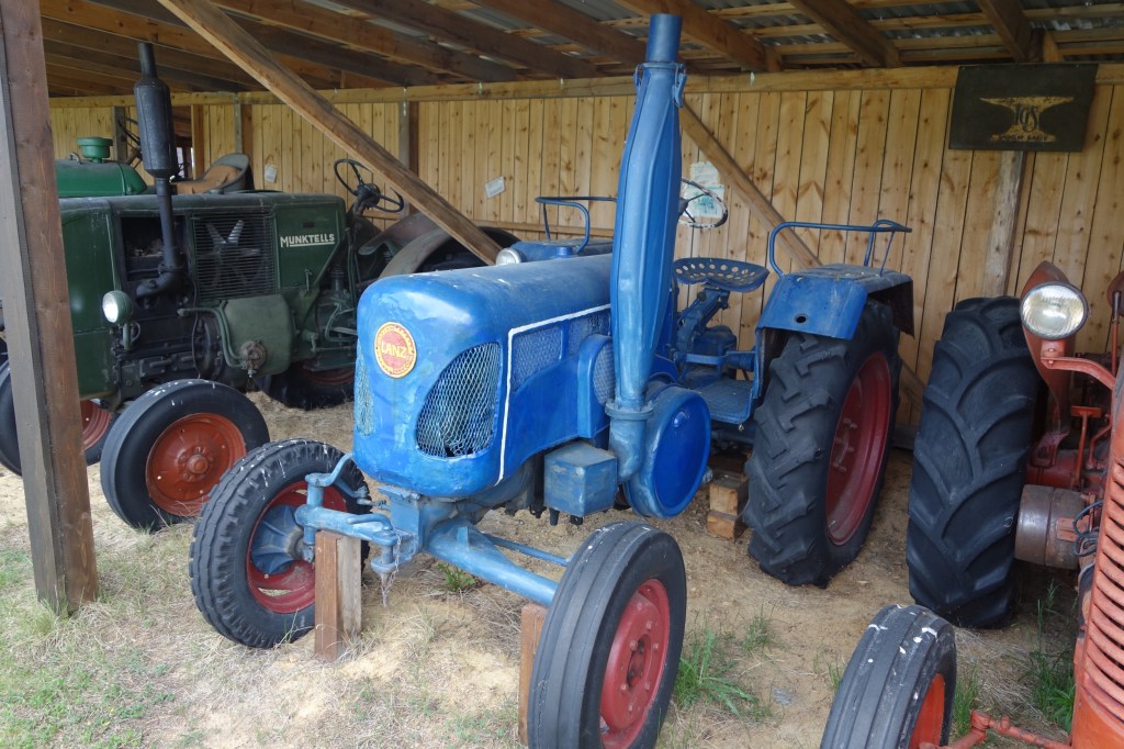 Kurz danach sehen wir am Straßenrand aufgereiht einige Oldtimer Traktoren. Da muß Dirk natürlich anhalten und sich alles genau anschauen. Wir werden freundlich eingeladen auf das Grundstück zu kommen, um all die alten Schätzchen genau in Augenschein zu nehmen. Leider können sich die beiden Männer nicht fachmännisch über die angesammelten Maschinen unterhalten, schade.