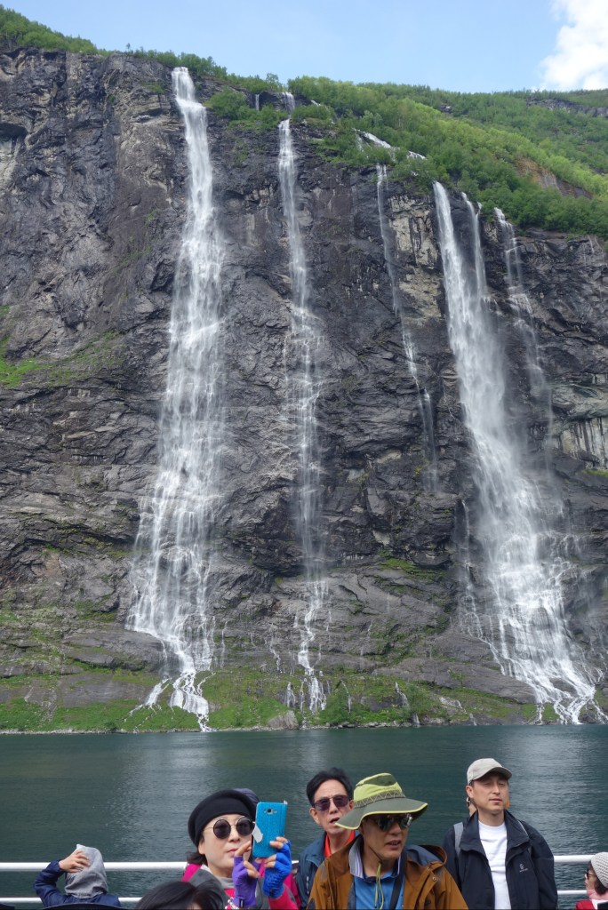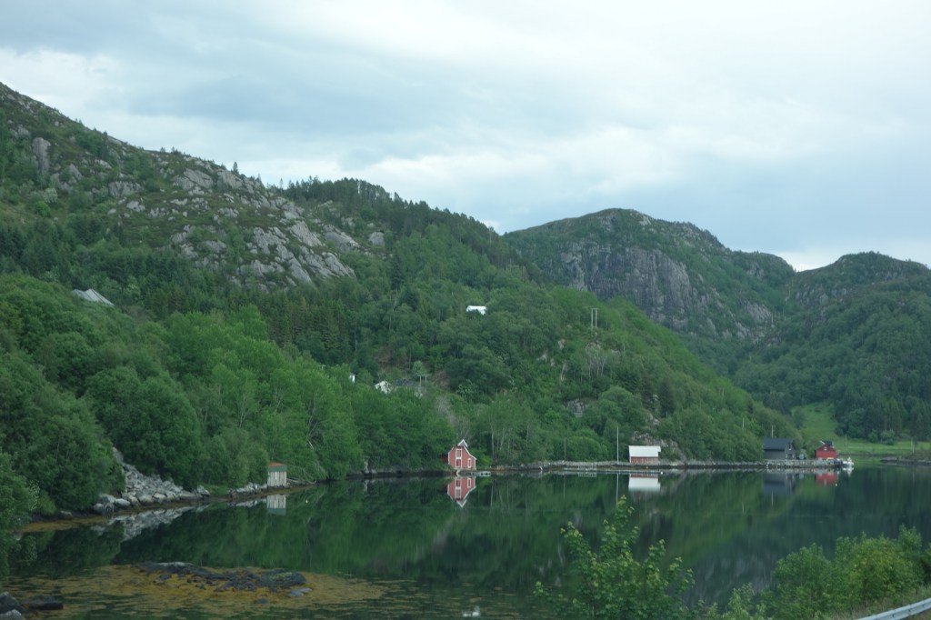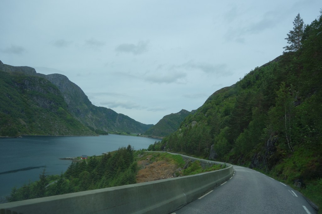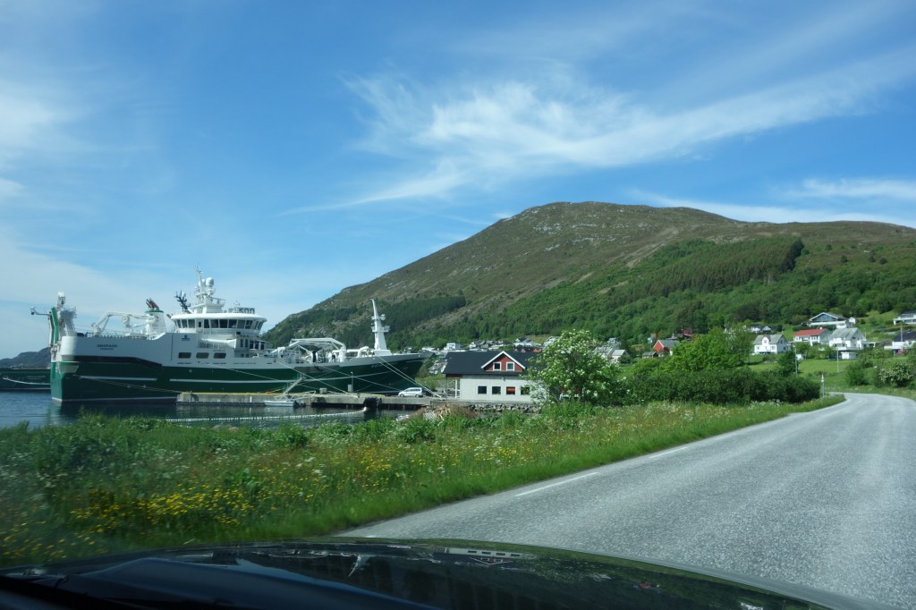 Nach einem Spaziergang durch das Dorf Geiranger, zum Wasserfall und zur Kirche, geht es um 12.30 Uhr auf die Fähre nach Hellesylt (90,50€). Im Preis enthalten ist eine „kleine“ Reiseleitung auf norwegisch, englisch, mandarin (ganz wichtig, verstehen 90% der Menschen an Bord) und sogar deutsch. Über die 15 fahren wir zum Stellplatz in Maloy.