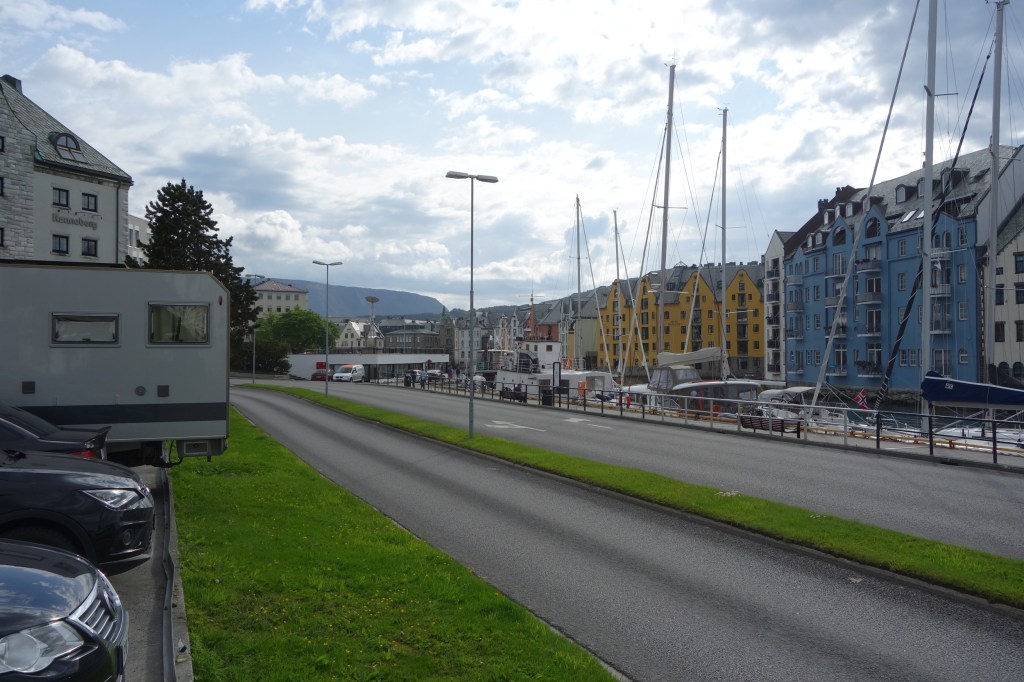 Etwas traurig verlassen wir am Nachmittag diesen schönen Ort und fahren weiter nach Alesund zum Hafen. Wir besichtigen die Altstadt, die wegen ihrer vielen hübschen Jugendstilhäusern so wenig dem Klischee norwegischer Städte entspricht. Schlendern am Hafen vorbei und übernachten auf dem Parkplatz des Aquariums.