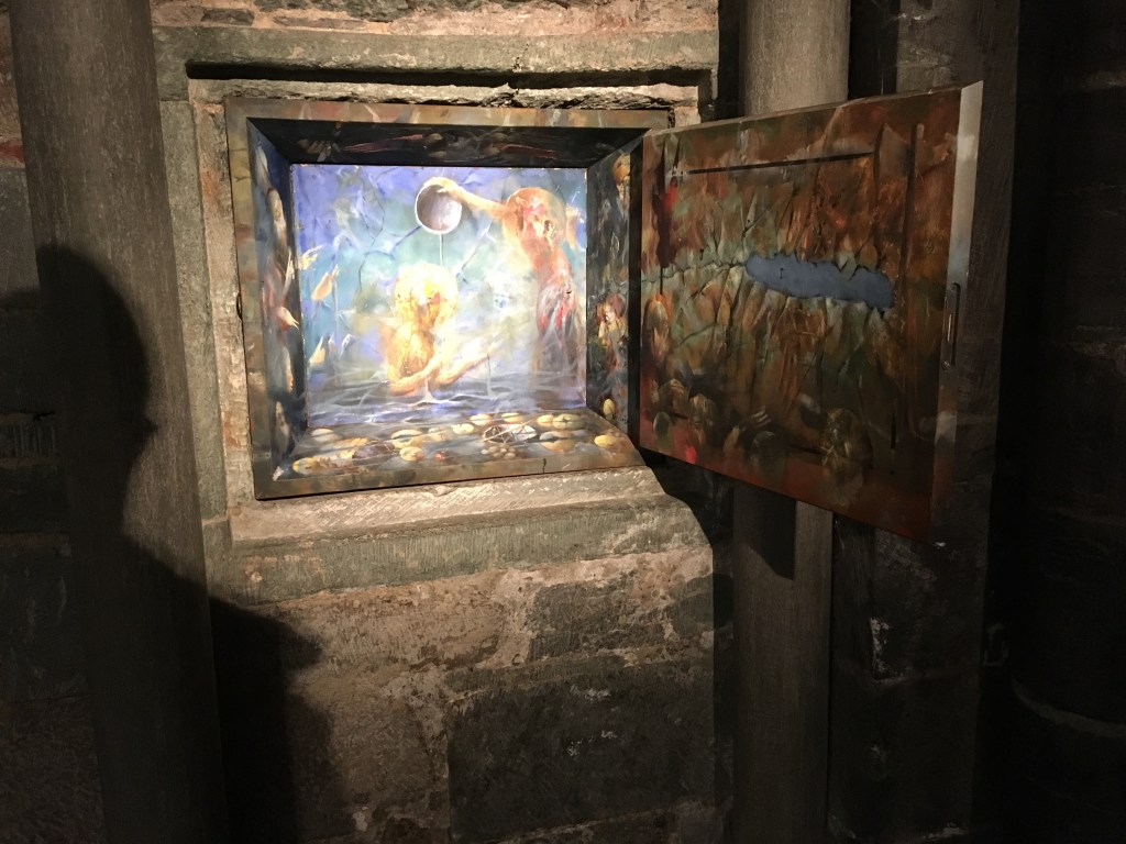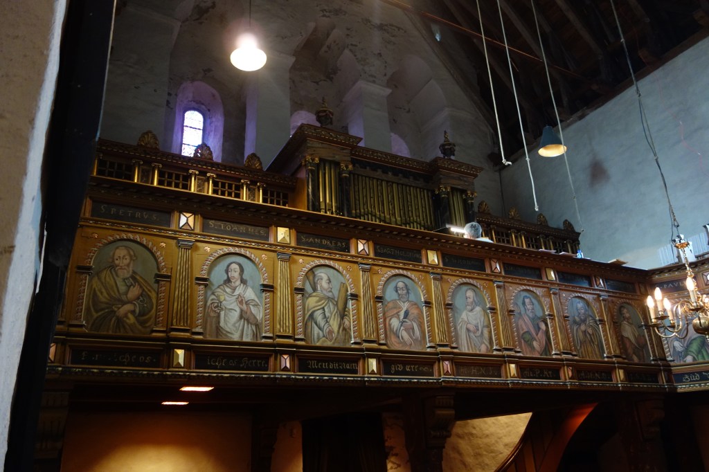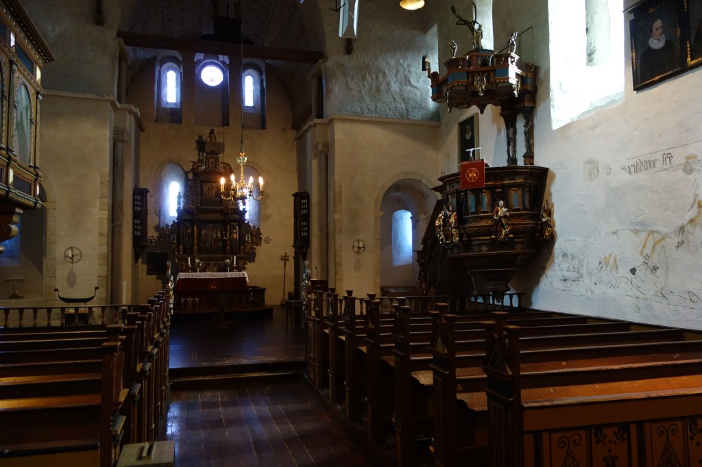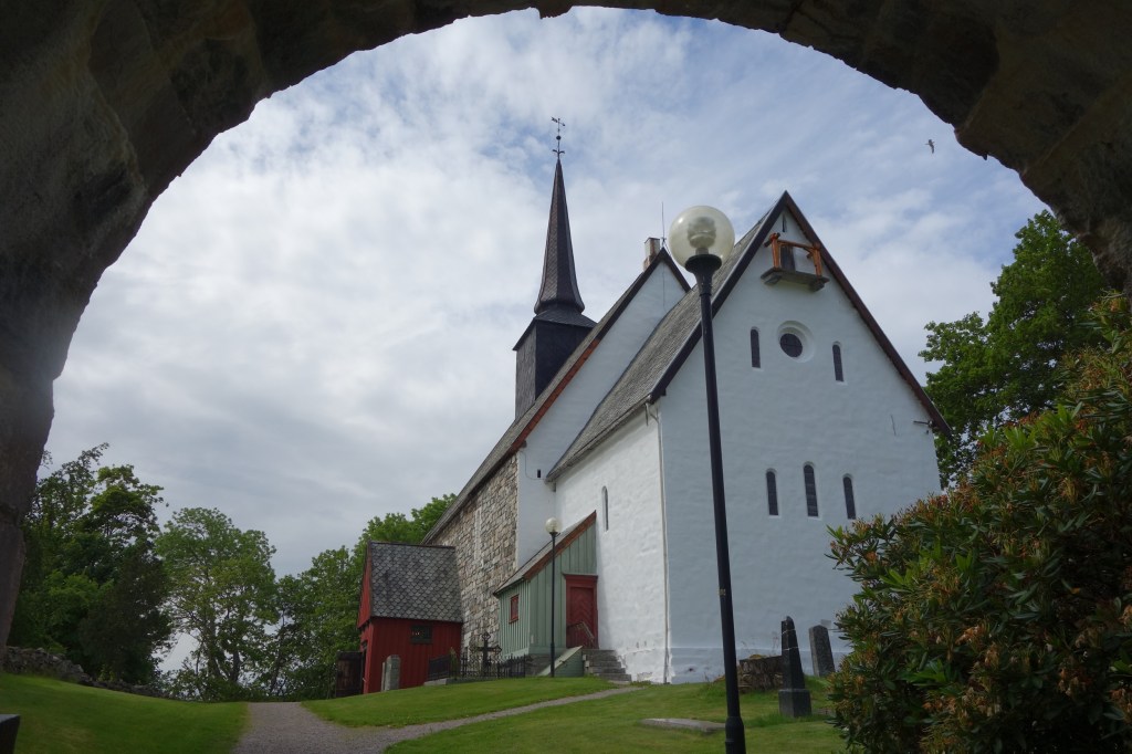 Ein hübsches kleines, idyllisches „Dörfchen“ mit Speicherhäusern, einer Schmiede und einem eigenen, wassergetriebenen Sägewerk. Gratis dazu gibt es Blicke durch die Fenster und einen tollen Blick ins Tal. Dort statten wir der steinernen Kirche von Tingvoll einen kurzen Besuch ab und dort haben Glück die Tür ist offen, denn die Organistin übt gerade!