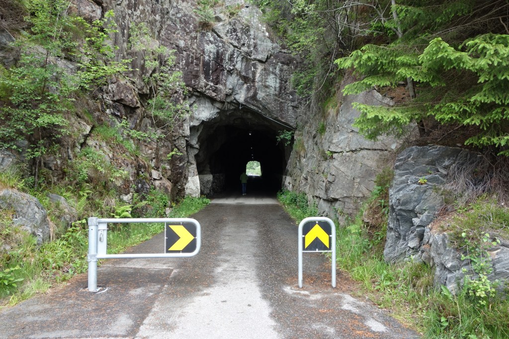 Das Romsdal und somit auch unser Schlafplatz wird flankiert von hohen und steilen Felswänden. Die ganze Gegend ist ein sehr beliebtes Wander- und Klettergebiet. Am Ende des Parkplatzareals befindet sich in dem kleinen, hübschen, alten Bahnhofsgebäude ein Hostel mit Selbstversorgung für Wanderer. Daneben ein Eisenbahnwaggon, zur Erinnerung an die Besatzung und den Widerstand während des 2. Weltkriegs.