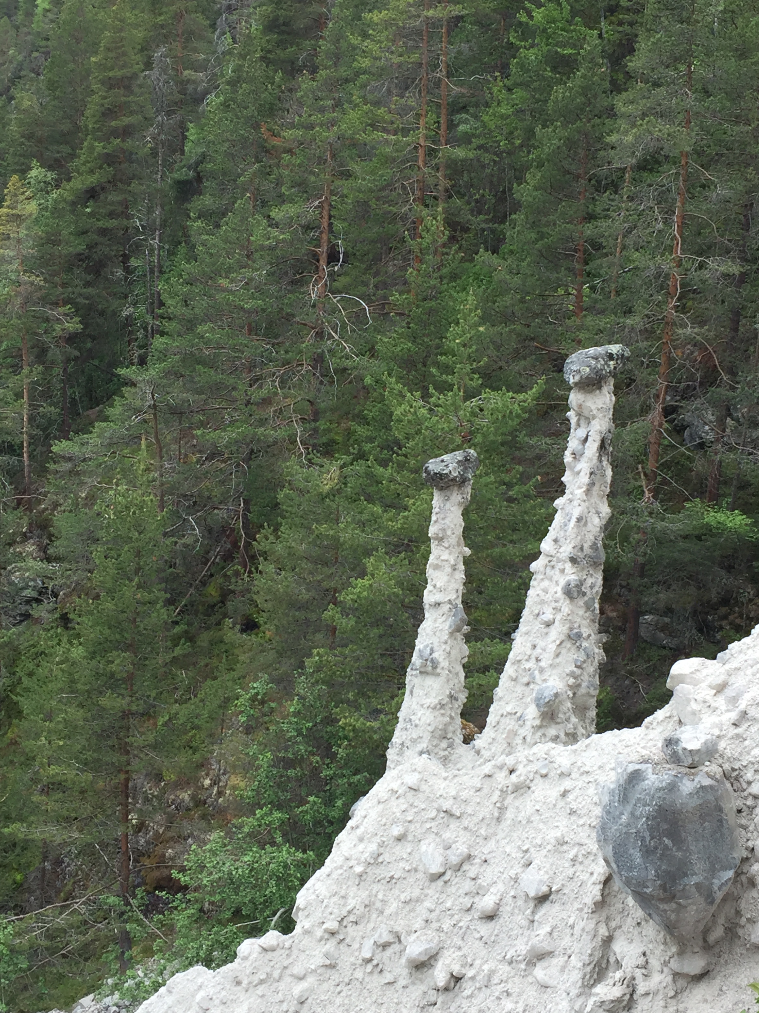Leider sehen bei unserem Besuch nur noch zwei größere Säulen, anscheinend wurden die übrigen „Priester“ bei den letzten größeren Unwettern zu Tal gespült. Jetzt wissen wir auch, wie der riesige Schuttberg auf unseren Parkplatz kommt!