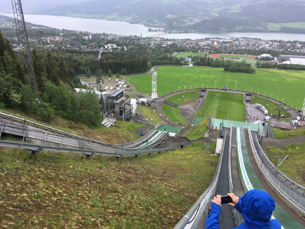 Jetzt ist es nur noch ein Katzensprung bis Lillehammer. Wir parken an den Olympiahallen und besichtigen die kleine Stadt.