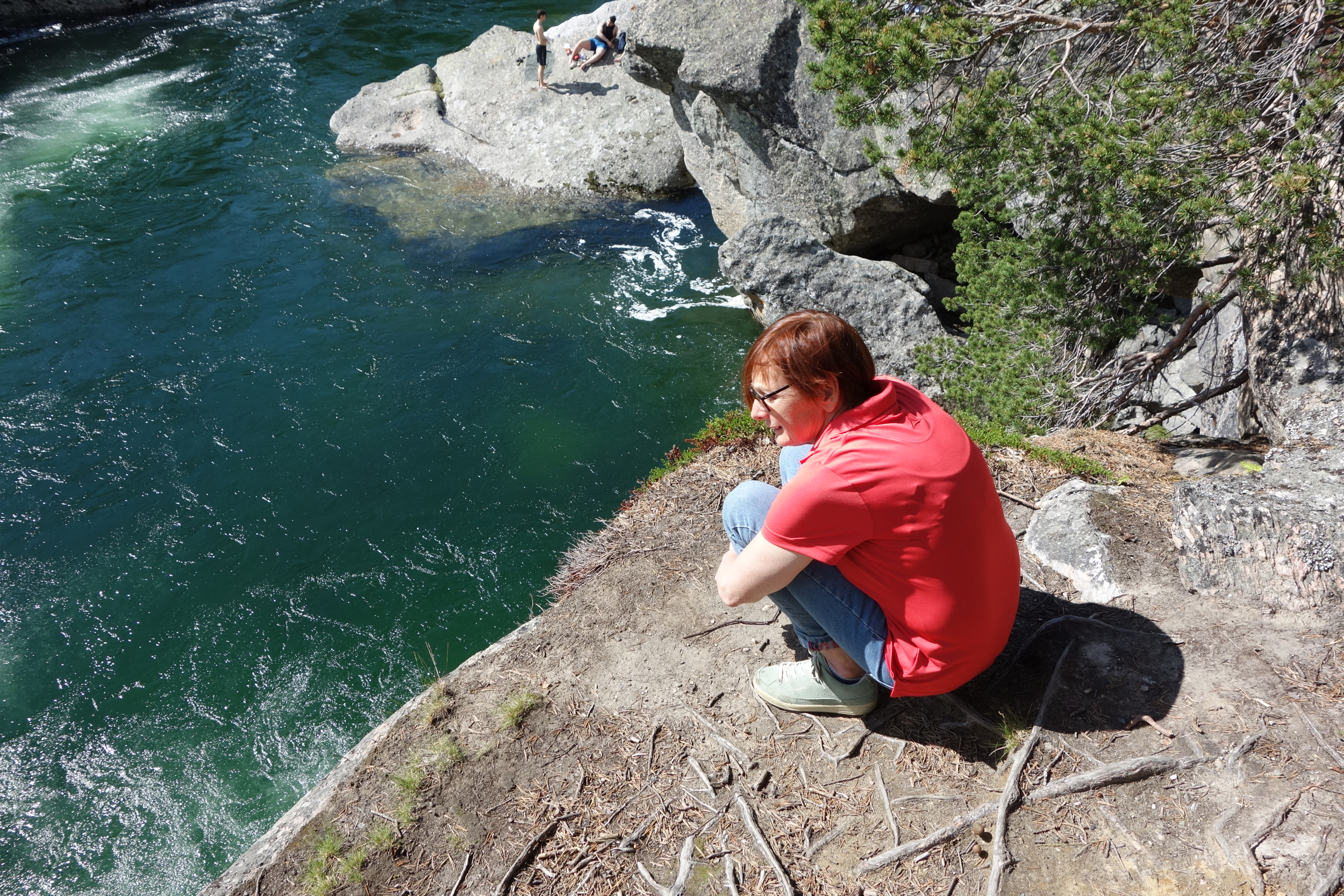 Nachmittags fahren wir nach Magalaupet, wo sich die Diva mit ursprünglicher Gewalt seit Jahrtausenden durch eine Engstelle quält. Wir sind nicht allein. Das Schauspiel wird von einem Naturfilmer festgehalten. Ein paar junge Männer schwimmen unterhalb der tosenden Engstelle und dann können wir dabei zusehen, wie ein junger Mann von der Klippe in das tosende und sprudelnde Wasser springt. Wir übernachten auf einem Parkplatz an der E 6 in der Nähe von Kongsvoll.
