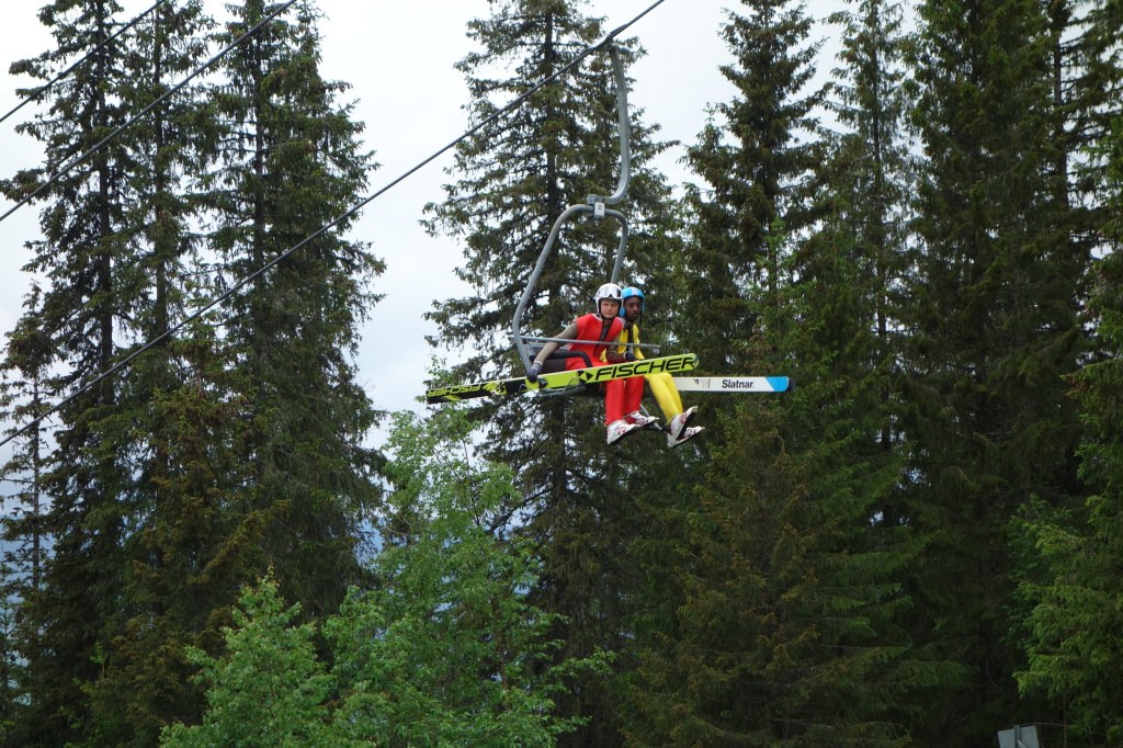Wir fahren zum Parkplatz oberhalb der Olympiaschanze und spazieren das kleine Stück zur Absprungstelle der „kleinen“ Schanze.