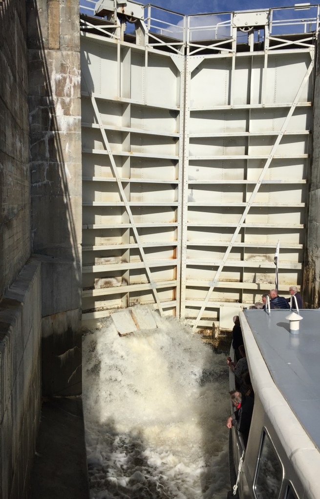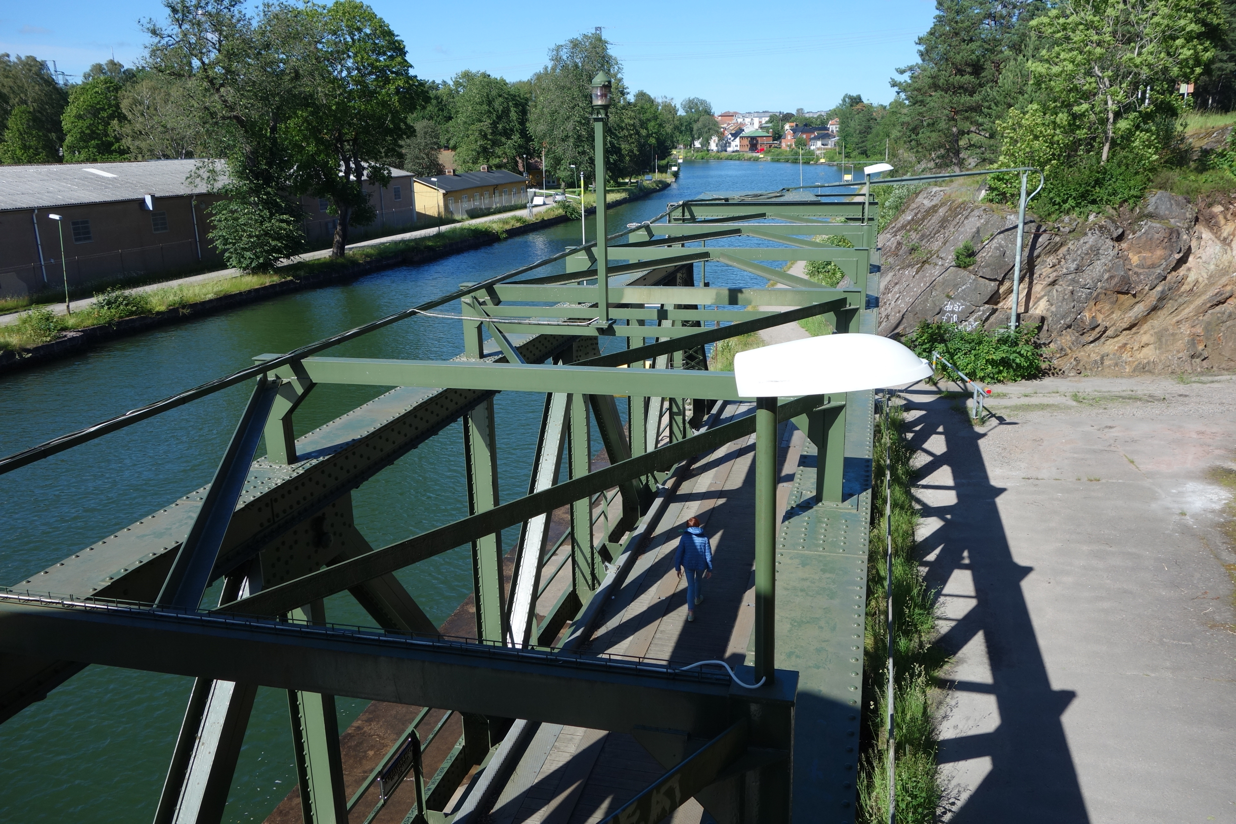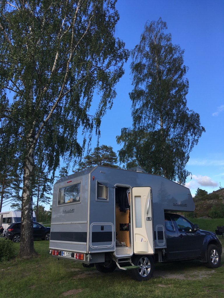 Wir erkunden nochmal diese riesige Festung und fahren dann das letzte mal in Norwegen einkaufen. Dort lassen wir unsere letzten Kronen und zahlen den Rest mit der Karte. Unsere Fahrt führt uns über die E6 und die 44 nach Trollhätan zur Schleuse am Trollhättan Kanal in Schweden. Obwohl – oder grade weil – auf dem großen Stellplatz noch ein Platz frei ist, fahren wir abends weiter auf einem im iOverlander angepriesenen Platz mitten im Wald. Hier „erleben“ wir das Mitsommernachtsfest und sind froh, dass niemand vorbeikommt und uns fragt, warum wir diesen Platz gewählt haben :-).