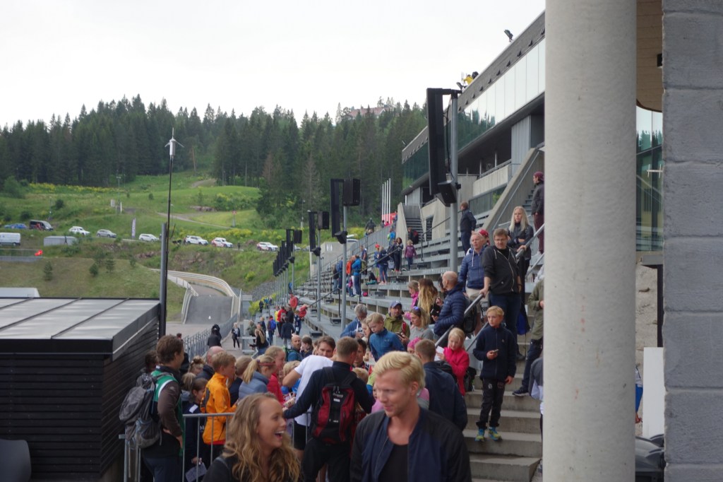 Wir hören, das im Skistadion noch etwas los ist, unsere Neugier lässt uns keine Ruhe und so gehen die kurze Stecke hinauf zum Stadion. Leider sind wir zu spät, die Siegerehrung der Rollskiläufer endet gerade.