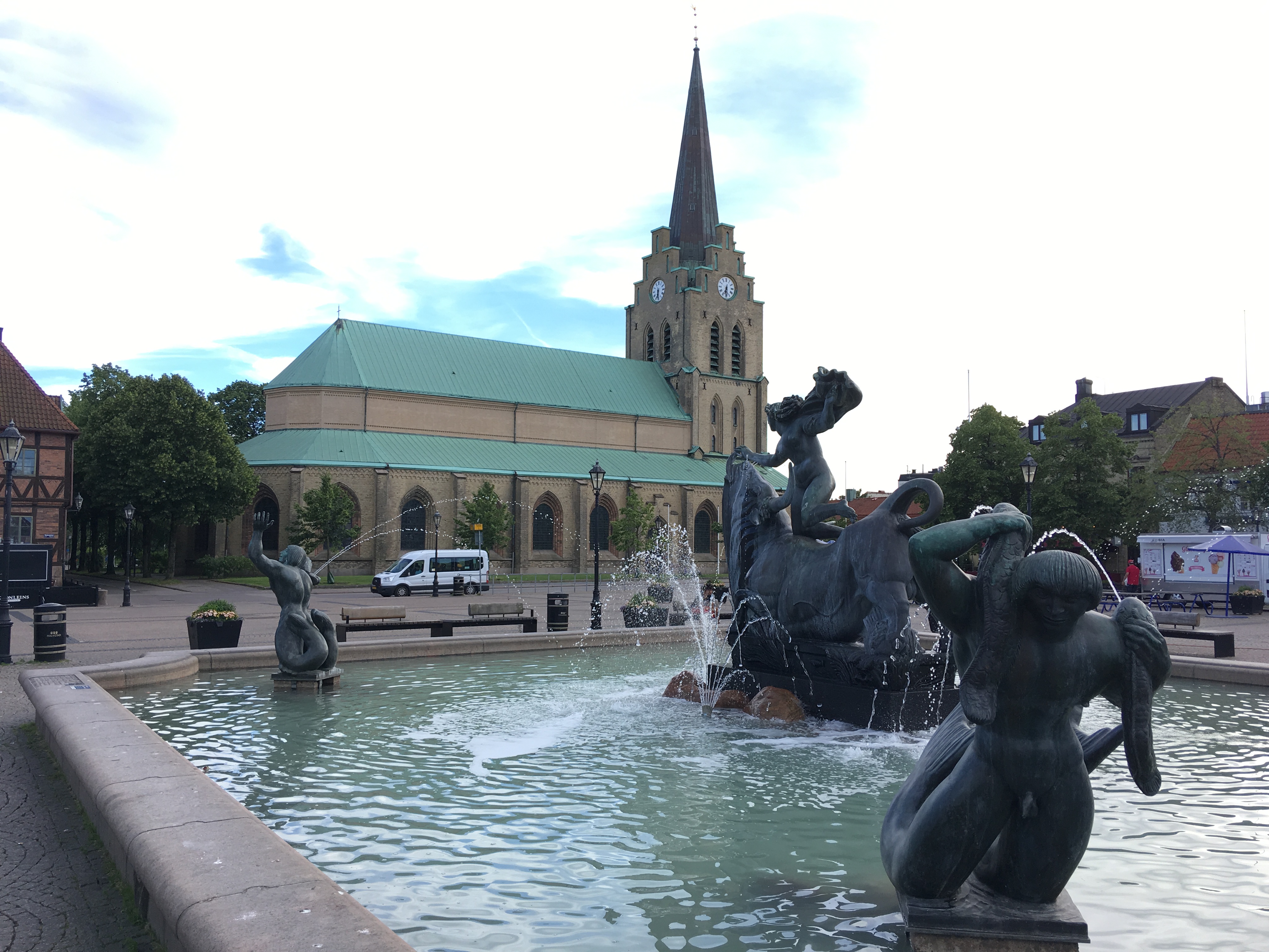 Nach einer ruhigen Nacht, fahren wir über Gravelroads durch einsame Gegenden zurück zur E6. Nach einem Strandbesuch geht’s zum Stellplatz direkt am Nissan in Halmstad. Beim Stadtspaziergang finden wir ein nettes Restaurant.