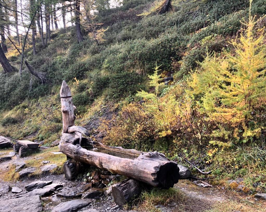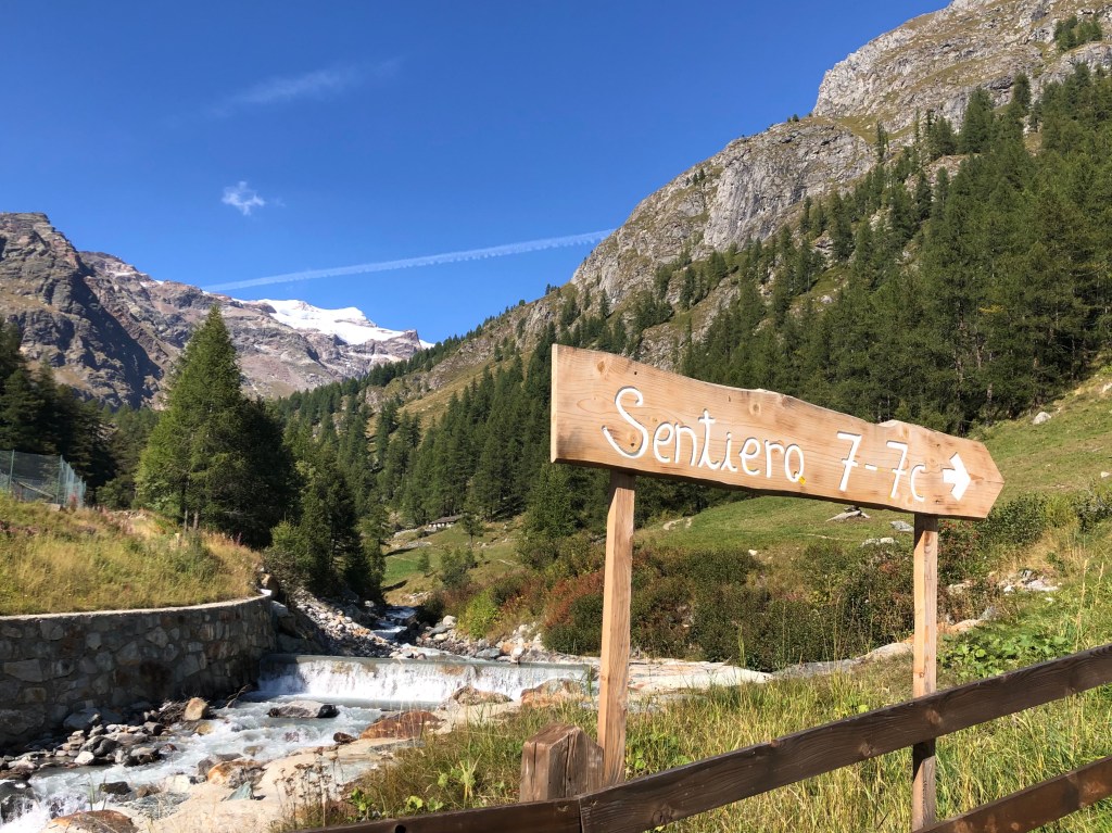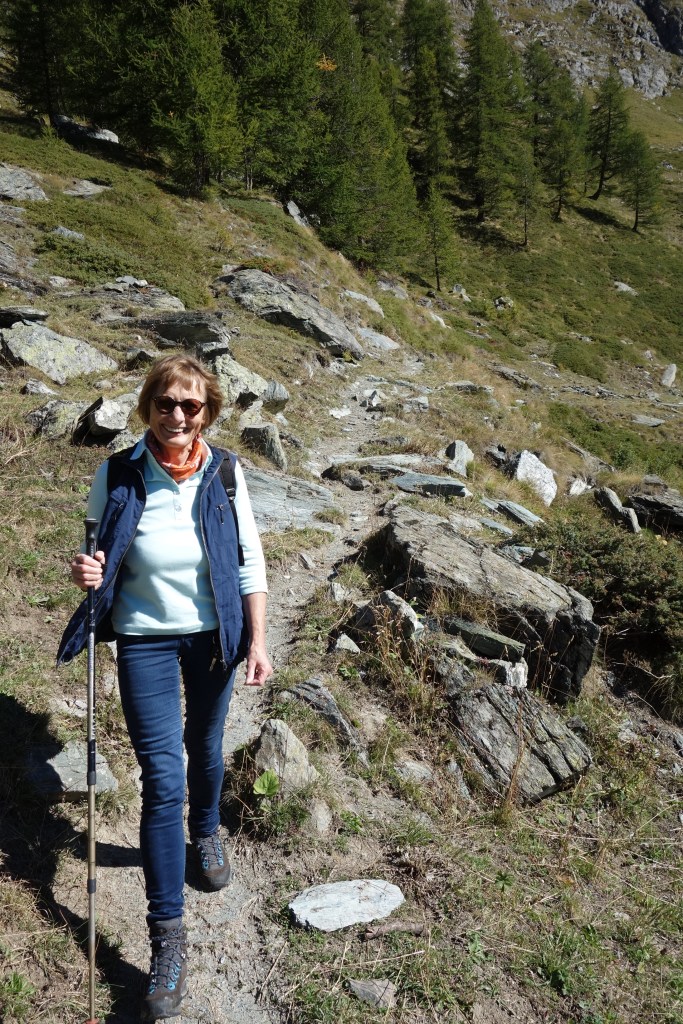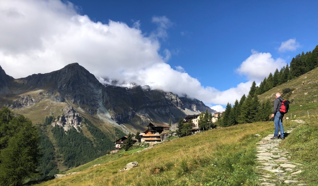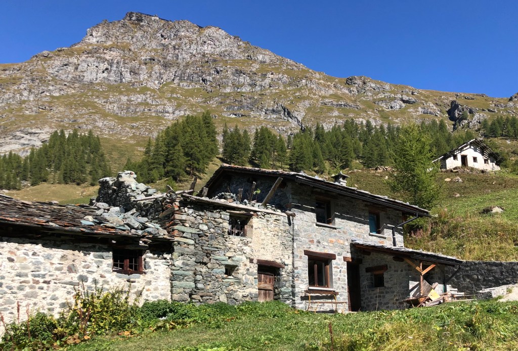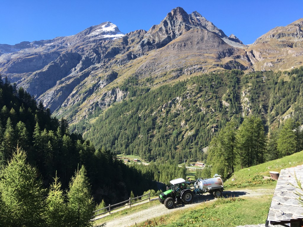 Fr 24.09. 29km Entlang der Skipiste und dann über den Wanderweg 7B erklimmen wir einen kleinen Teil des Berges. Dann laufen wir an einer recht neuen Hochalm und mehreren alten Häusern vorbei zurück zu Bimo. Wir fahren talwärts auf einen kleinen Parkplatz in Issime.