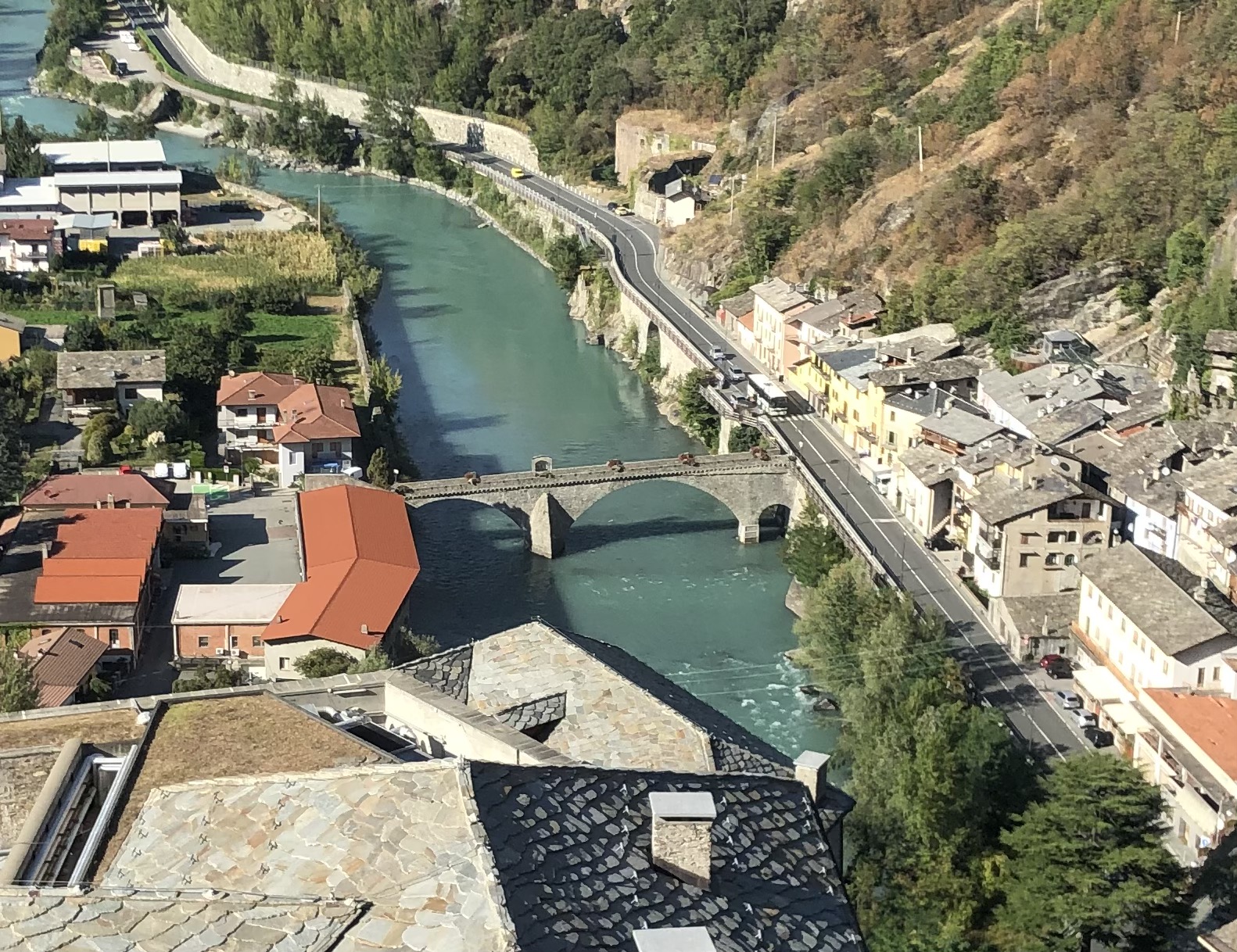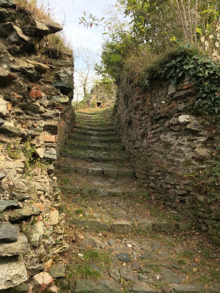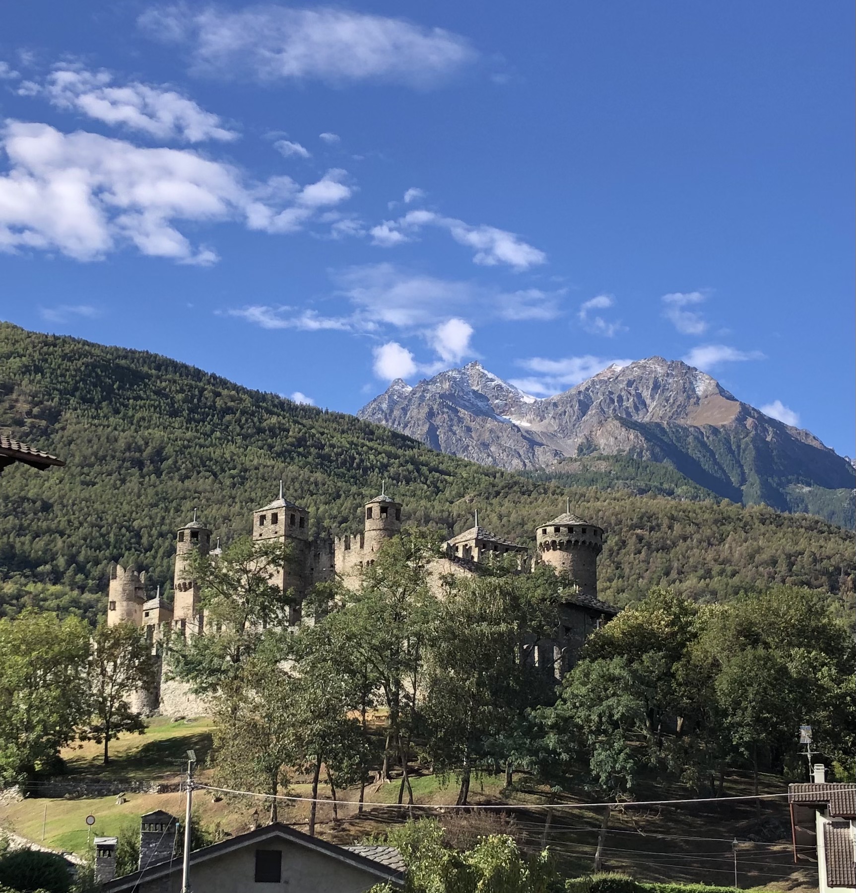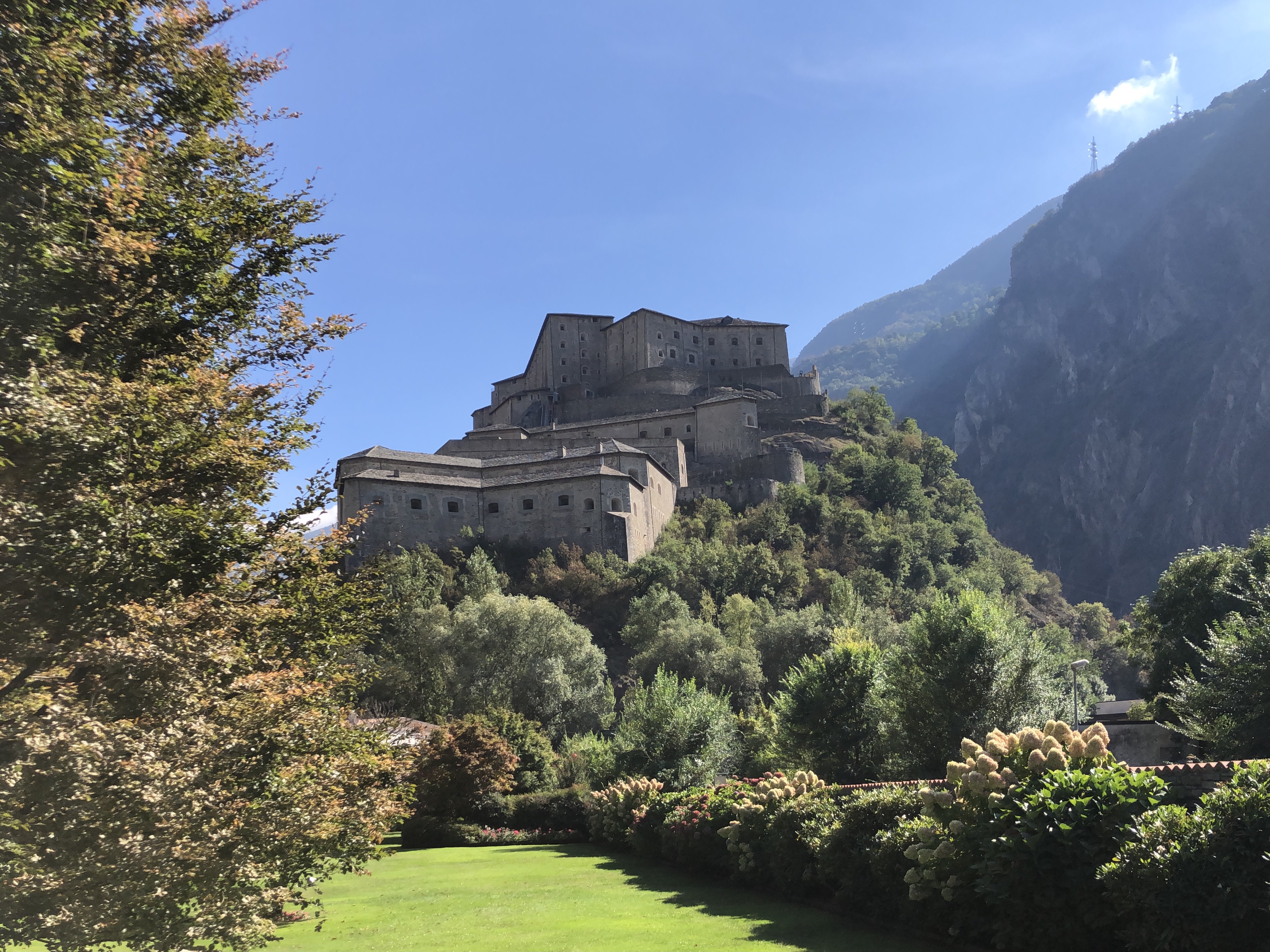 Mi 22.09. 13km 10€ Wir fahren zum Castello de Issogne und nehmen gratis an einer italienischen Führung teil. Danach geht’s auf den Stellplatz in Hône. Von dort wandern wir durch die hübsche Kleinstadt Bard und besichtigen das Forte Bard. Abends besuchen wir eine Pizzeria.