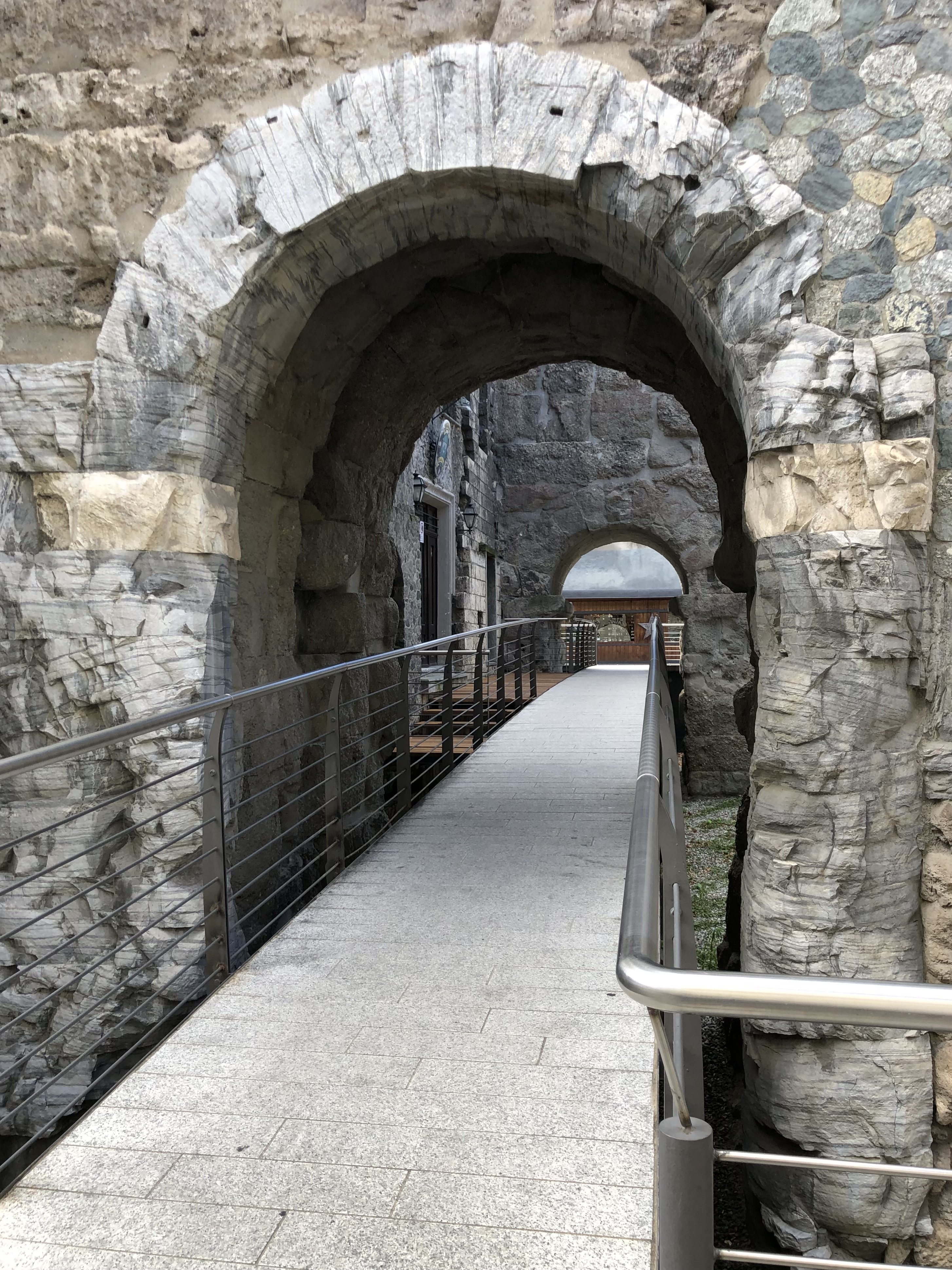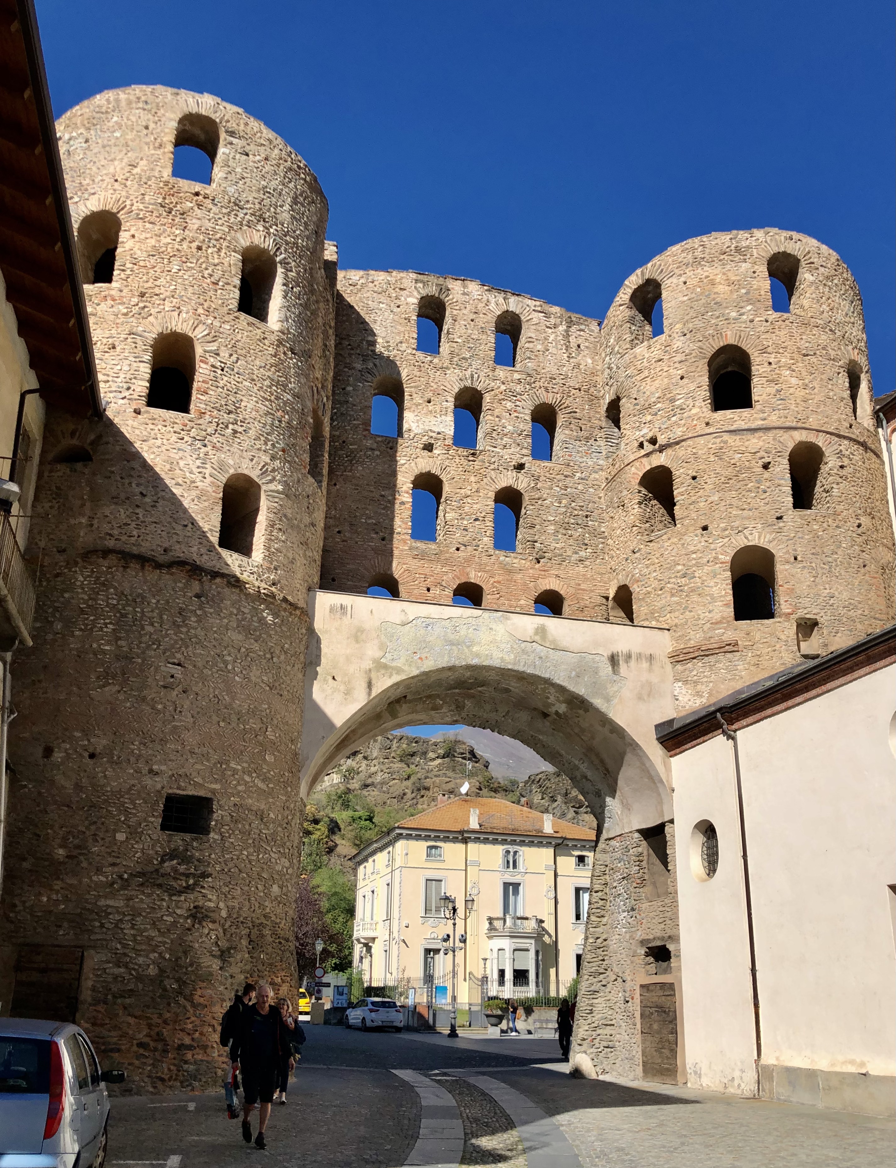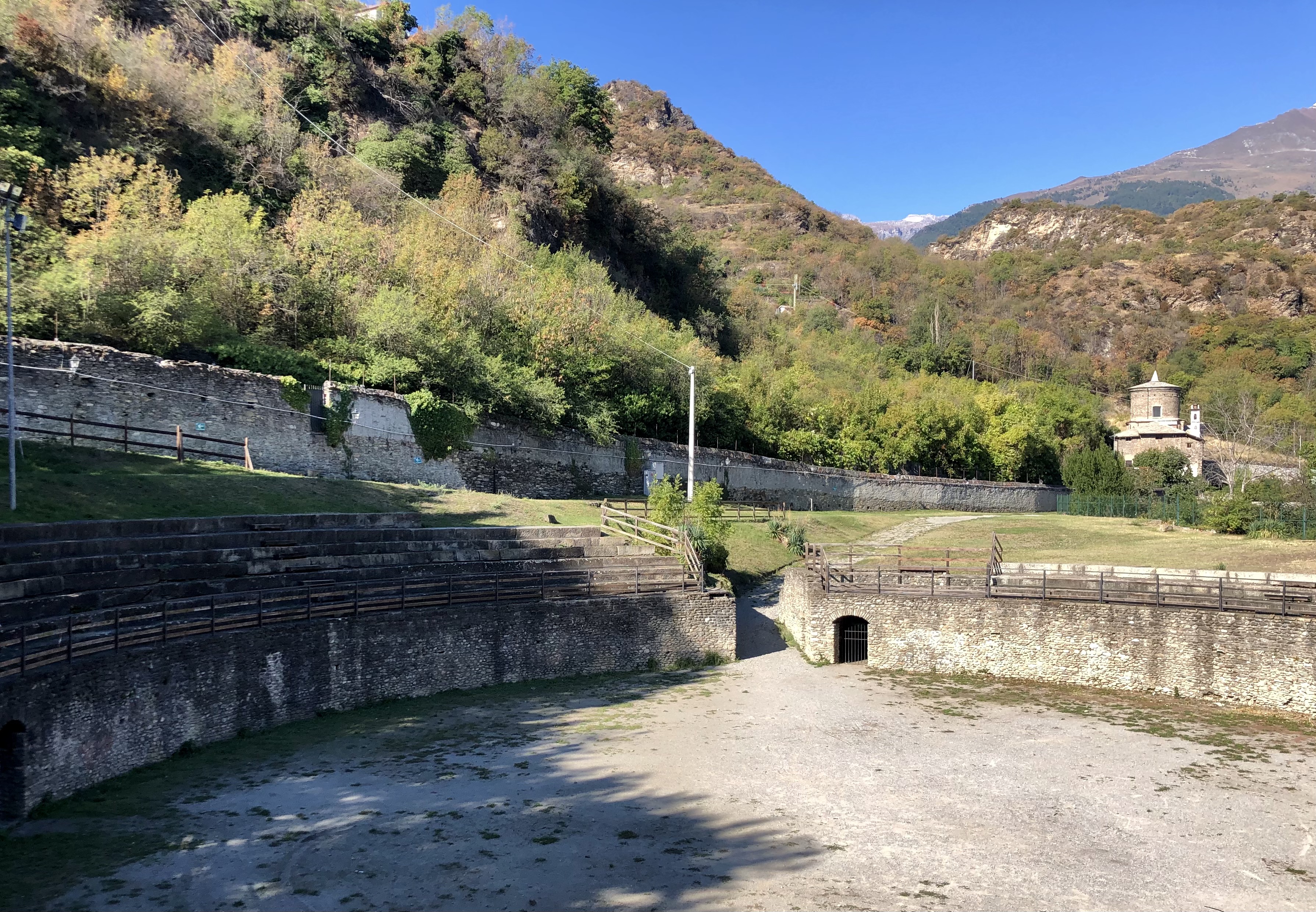Mi 22.09. 13km 10€ Wir fahren zum Castello de Issogne und nehmen gratis an einer italienischen Führung teil. Danach geht’s auf den Stellplatz in Hône. Von dort wandern wir durch die hübsche Kleinstadt Bard und besichtigen das Forte Bard. Abends besuchen wir eine Pizzeria.