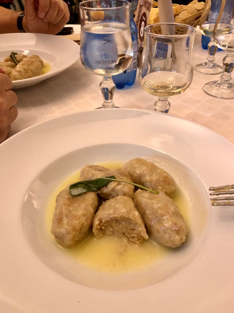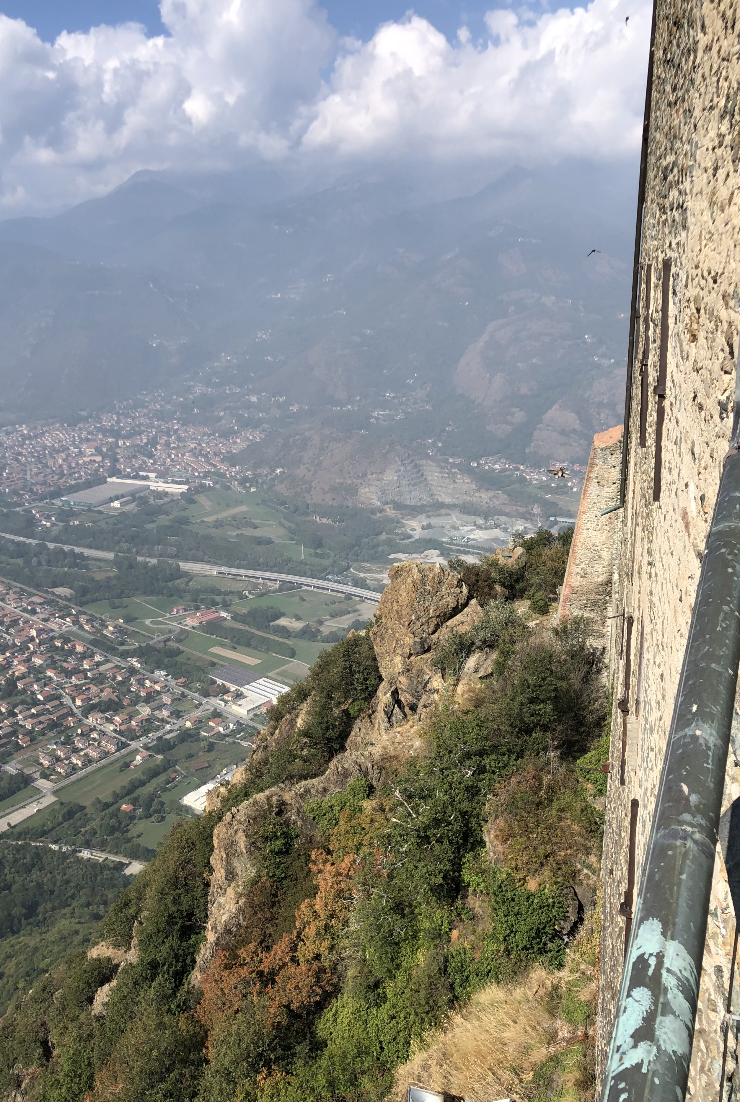 Mi 29.09. 53km 6€ Nach einer ruhigen Nacht kamen morgens viele Autos und selbst ein großer Reisebus hier oben an. Alles strömte zum Kloster. Auch wir schlossen uns an, aber das Kloster war für uns bis 12:30 Uhr tabu. Es wurde ein Messe zum Michaelistag gefeiert. Also gingen wir zurück zum Auto und versuchten es um 13:00 Uhr. Jetzt konnten wir die imponierende Anlage besichtigen. Den Eintrittspreis von 8€ brauchten wir nicht zu entrichten (Geburtstagsgeschenk)! Zum Abschied wurde noch Käse gekauft und wir fuhren weiter nach Susa. Dort besuchten wir abends ein Restaurant, das wir schon vom Toyota-Offroad-Camp 2010 und von unserer Westalpentour 2014 kannten.