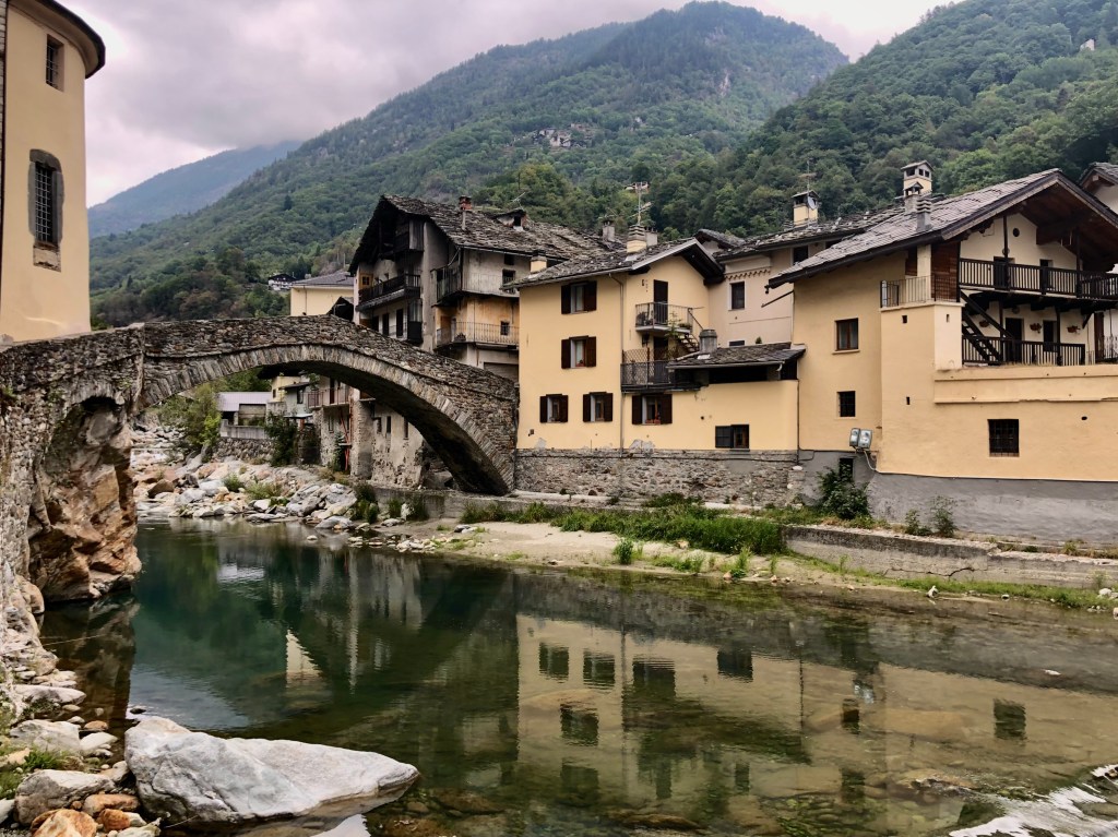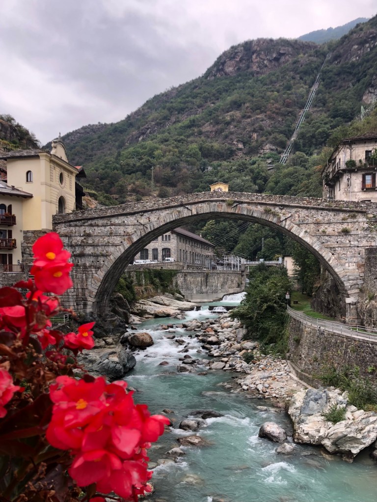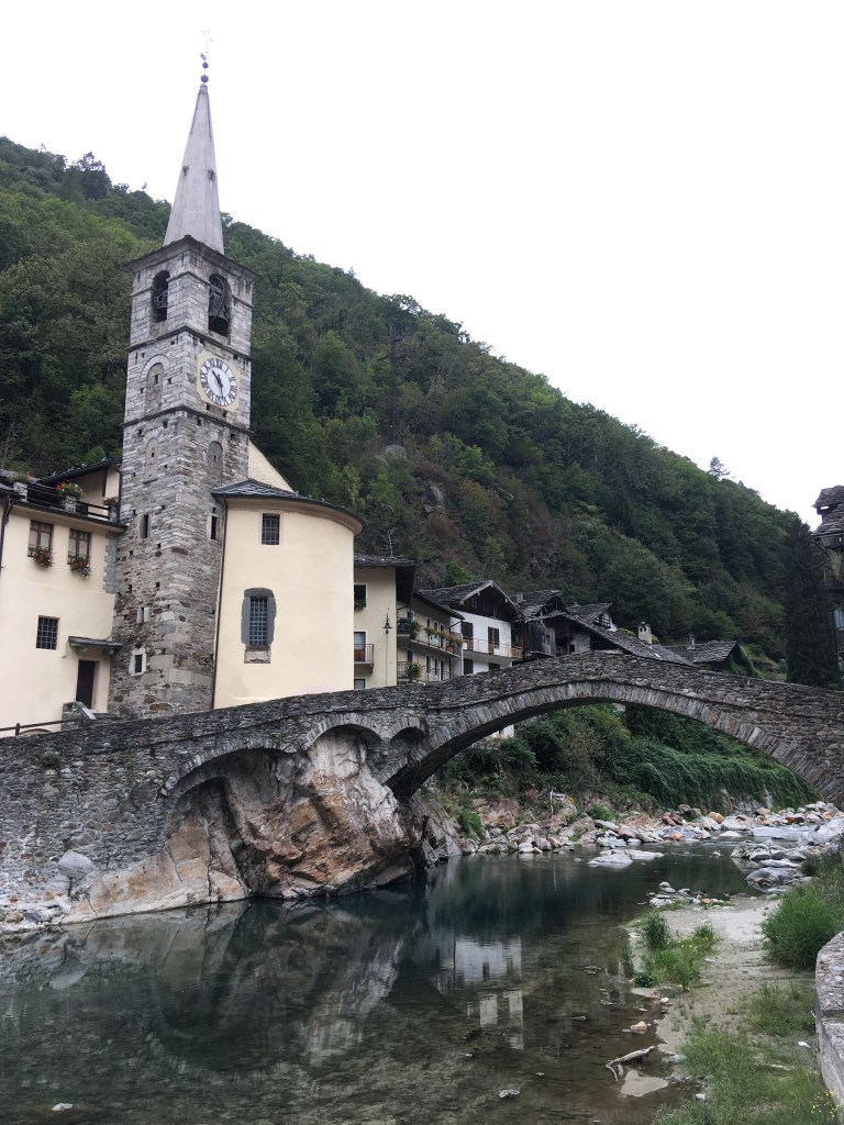Do 23.09. 45km 12,80€ Jetzt geht’s durchs Val di Gressoney – mit einem Fotostopp bei der römischen Brücke in Gaby – bis Staffal auf einen Stellplatz. Mit einer kleinen Wanderung durch den Ort und einem Cappuccino in „Klein Finnland“ beenden wir den Tag.