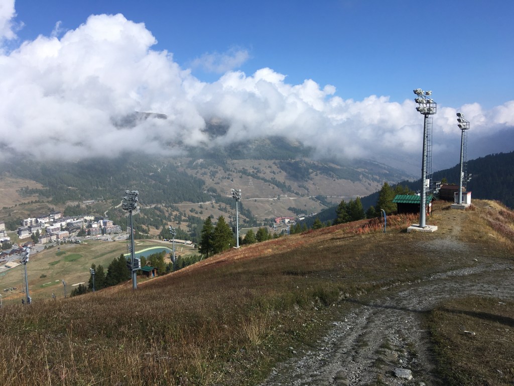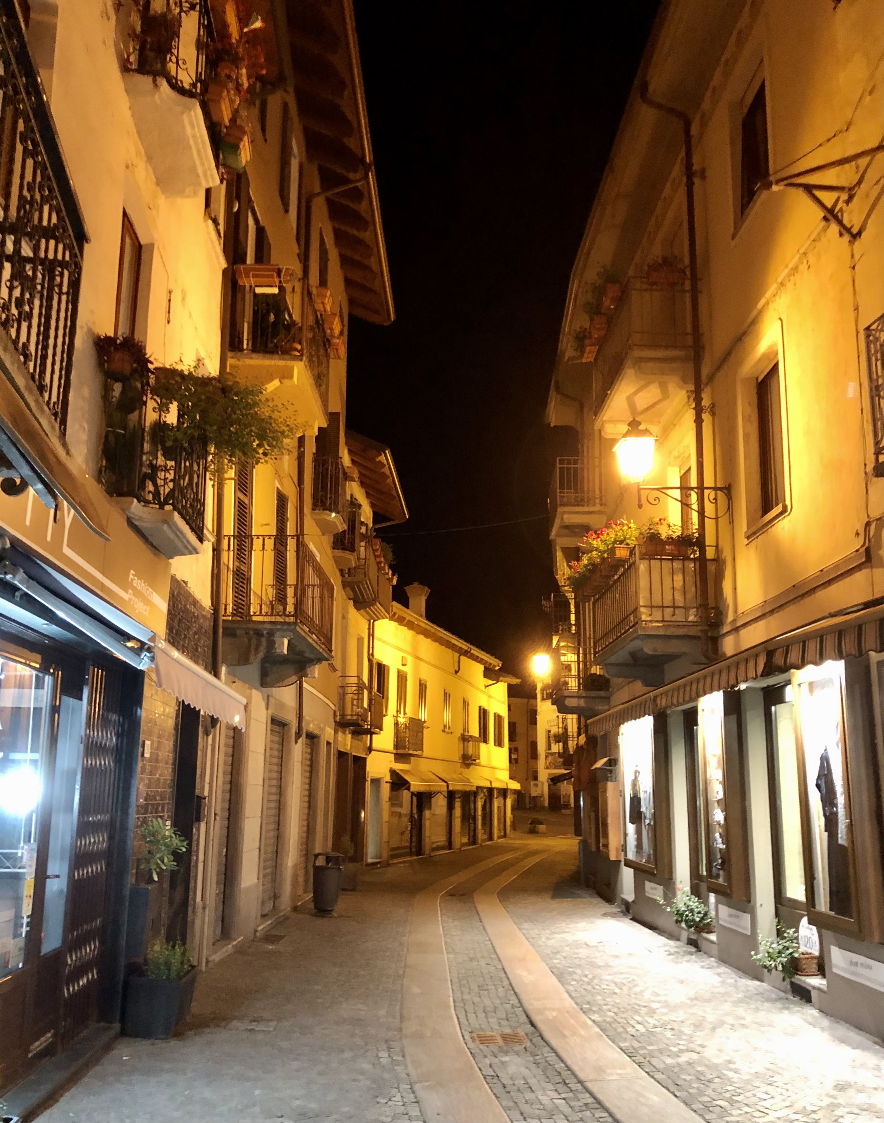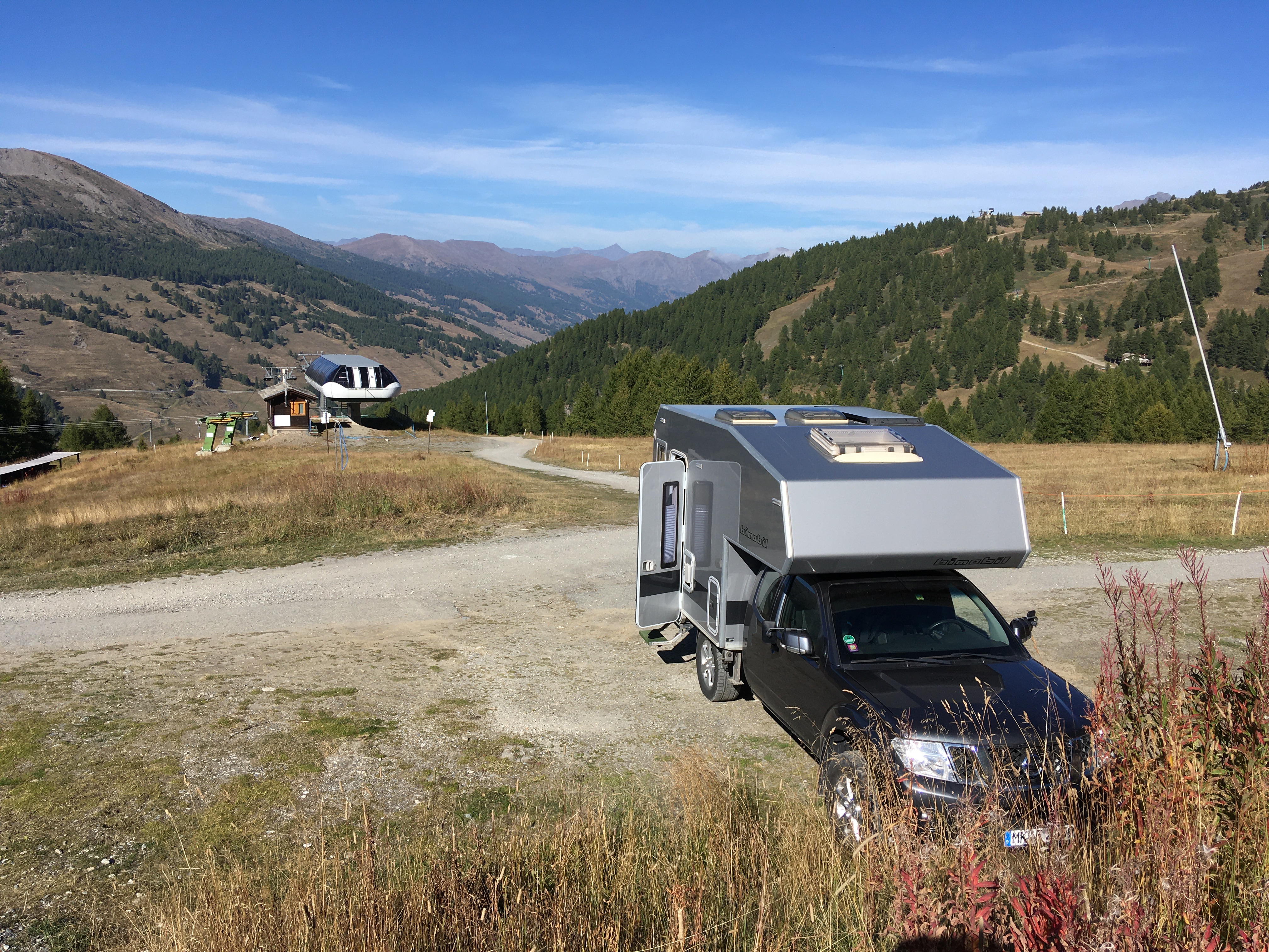 Do 30.09. 54km Morgens laufen wir durch den Ort und besichtigen die römischen Hinterlassenschaften. Dann geht’s hinauf auf den Colle Sestriere. Hoch über dem Skiort Sestriere finden wir an einem Versorgungsweg einen kleinen Parkplatz. Nach einem kleinen Abendspaziergang blicken wir auf die fast menschenleere Stadt.