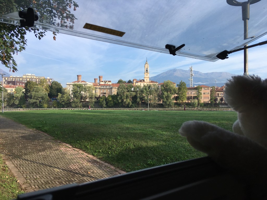 Mo 27.09. 106km 11l GLS bei Q8b Morgens gehen wir zur Wildwasserstrecke und fahren danach zu einer Gastankstelle (In Italien darf kein LPG an Camper abgegeben werden ☹️). Wir fahren zum Lago Viverone auf einen Campingplatz, aber auch dort gibt es kein Gas. Wir werden zur Q8 Tankstelle zurück geschickt. Hier ist das Tanken überhaupt kein Problem ♂️. Nun fahren wir motiviert weiter nach Chivasso. Der große Parkplatz liegt nahe am Po. Wir wandern durch die Altstadt und essen in einer … Pizzeria 🙈.