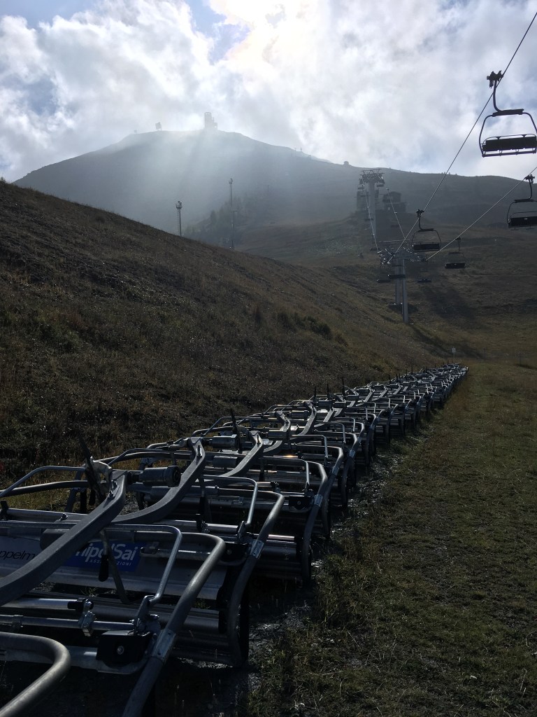 Fr 01.10. 24km Wir wandern auf „unseren Hausberg“ und „bewundern“ den Skizirkus ohne Schnee. Nachmittags fahren wir hinunter zum Forte di Fenestrelle und übernachten auf dem Parkplatz.