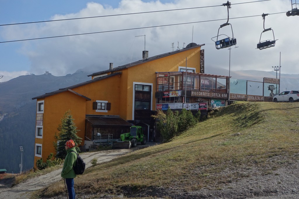 Mo 20.09. 58km Morgens wandern wir bei schönem Wetter oberhalb Fenis. Als sich das Wetter zuzieht, fahren wir über den Col di Joux (tolle Sicht ins Aostatal) über Brusson nach Champolux. Wir übernachten mitten auf dem großen Parkplatz der Seilbahn.
