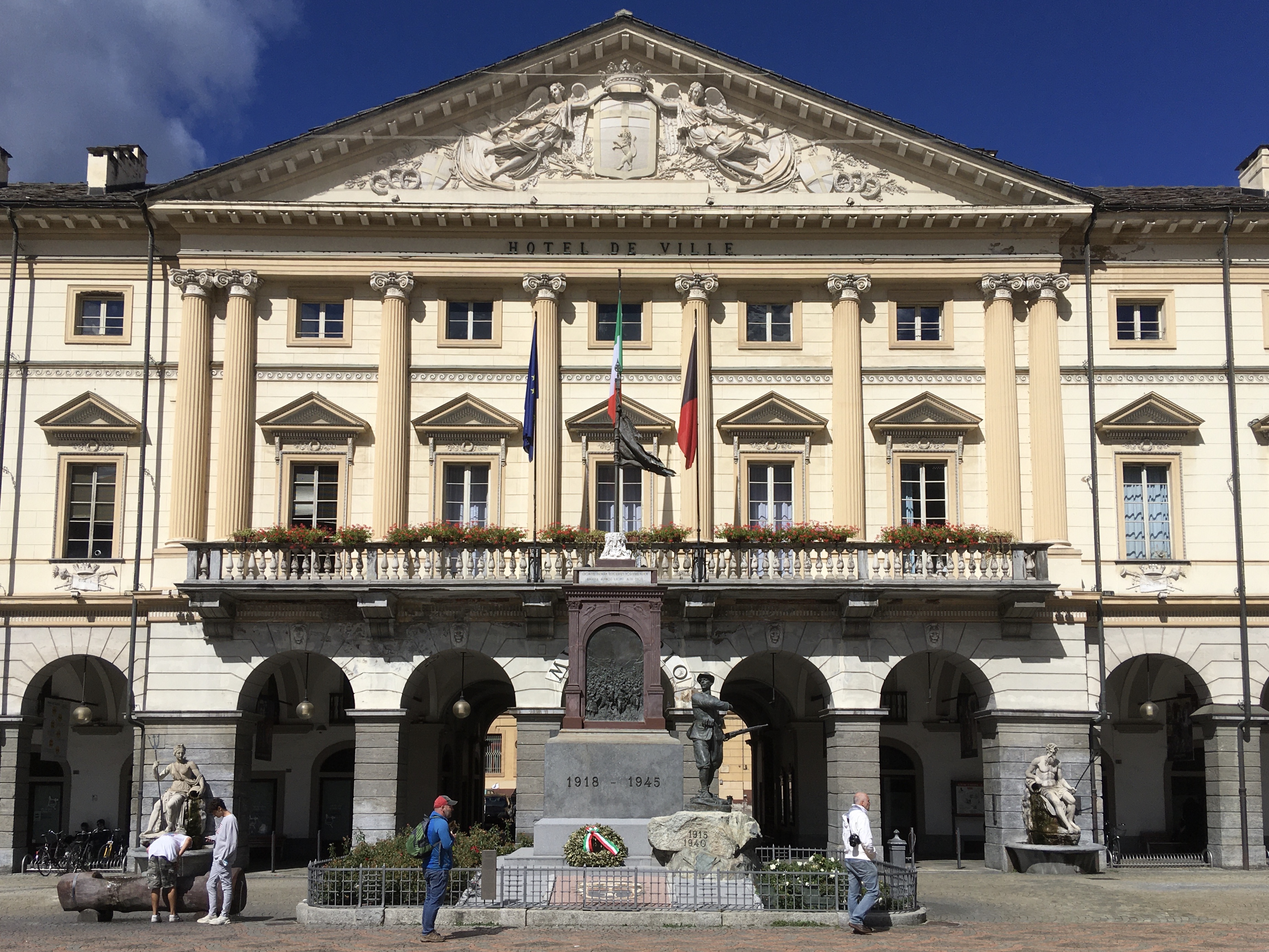 So 26.09. 21km. 5€ Nach Ivrea zum Weltkulturerbe Olivetti. Besichtigung einiger Gebäude, der Altstadt und des Dom’s. Wir übernachten auf einem kleinen Stellplatz in der Stadt.