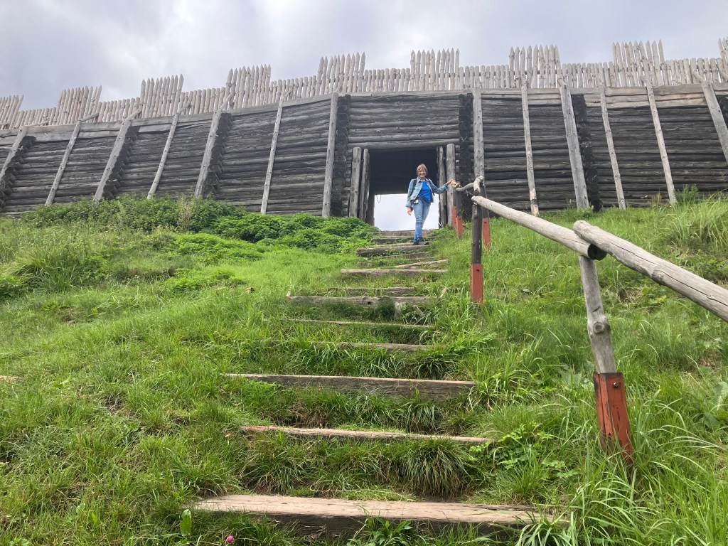 Nach unserer Mittagspause im Bimo wandern wir zum Góra Birów. Auf dem Felsen steht heute eine rekonstruierte Holzburg mit herlichem Rundumblick über die Landschaft. Archäologische Funde zeigen, dass dieser Ort bereits in prähistorischer Zeit besiedelt wurde. Besonders im Frühmittelalter, etwa im 9.–11. Jahrhundert, befandt sich hier eine slawische Siedlung. Reste von Befestigungen, Keramikscherben und Werkzeuge wurden bei Ausgrabungen entdeckt.