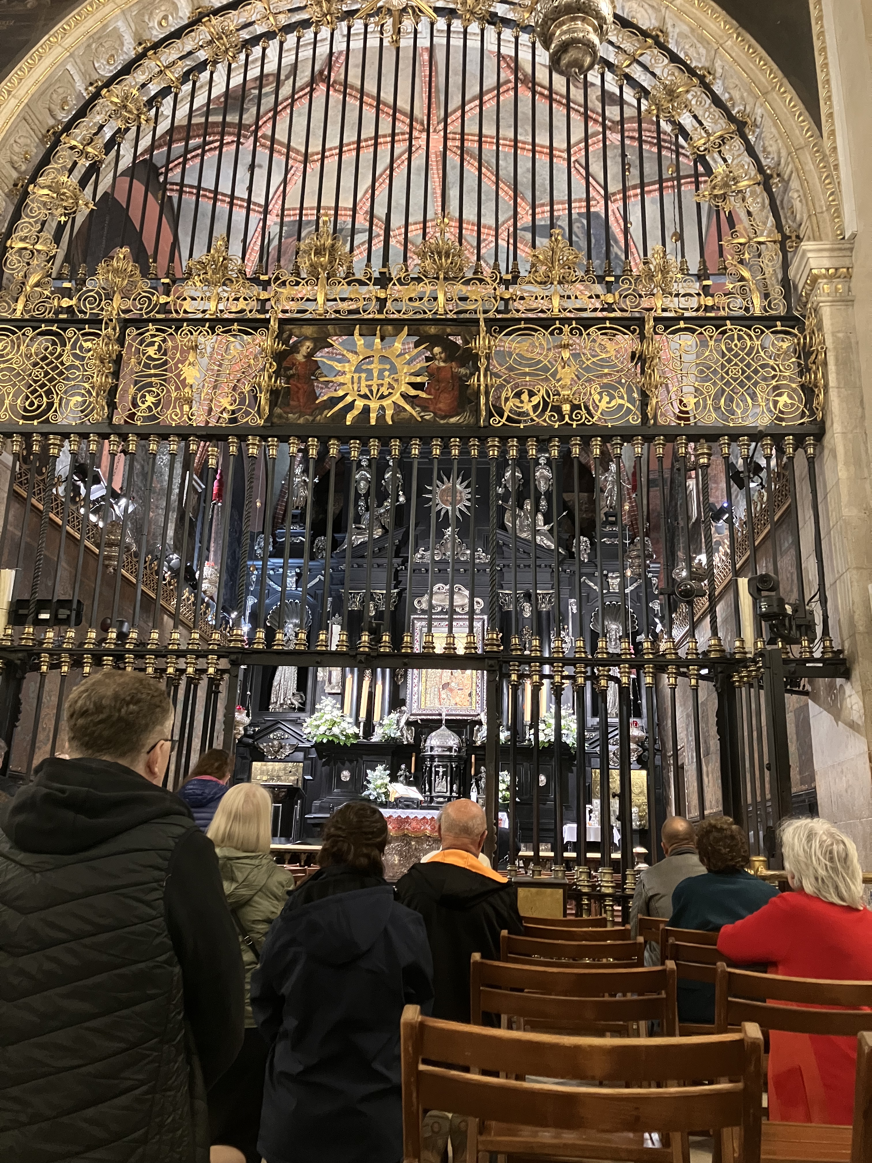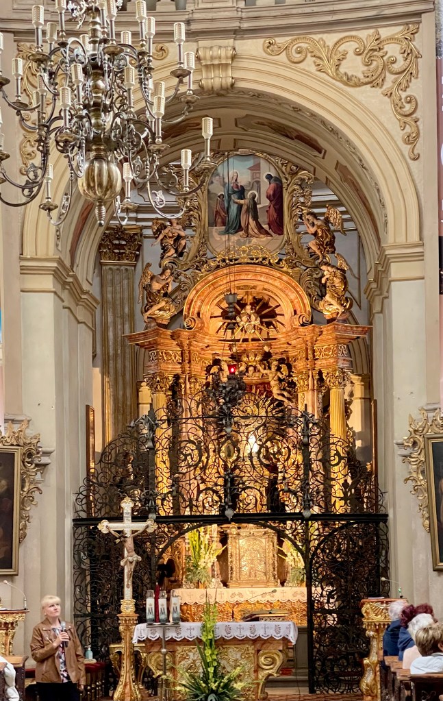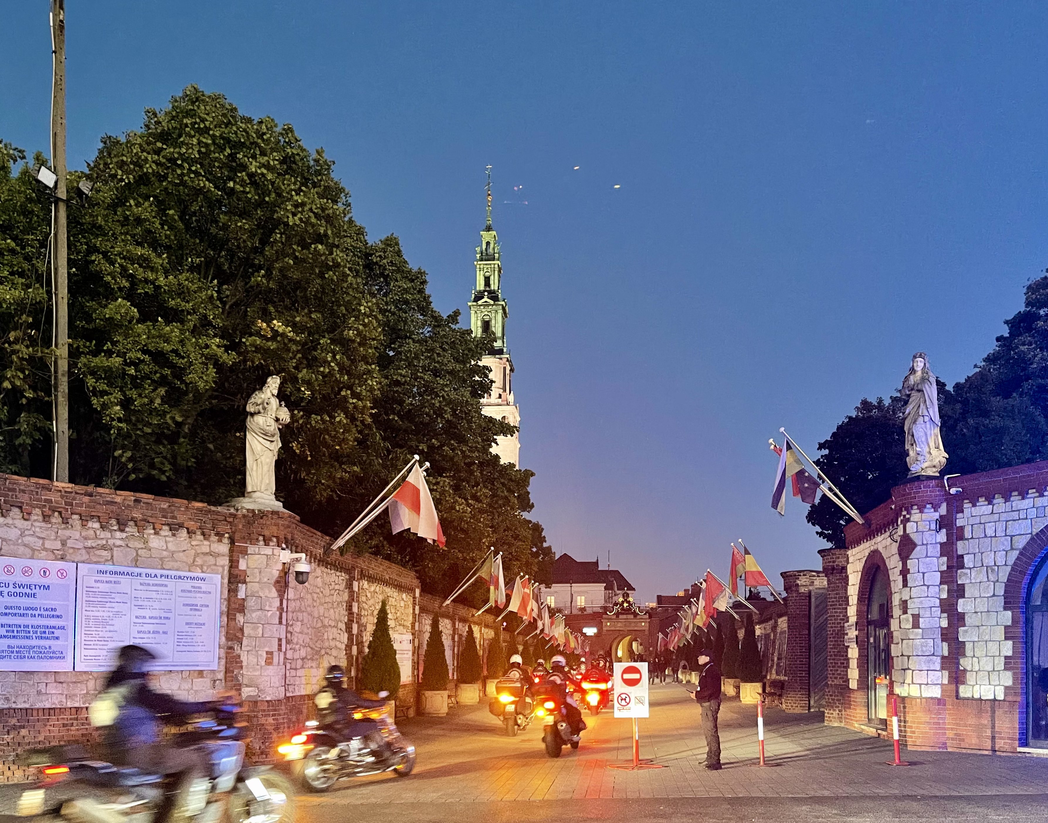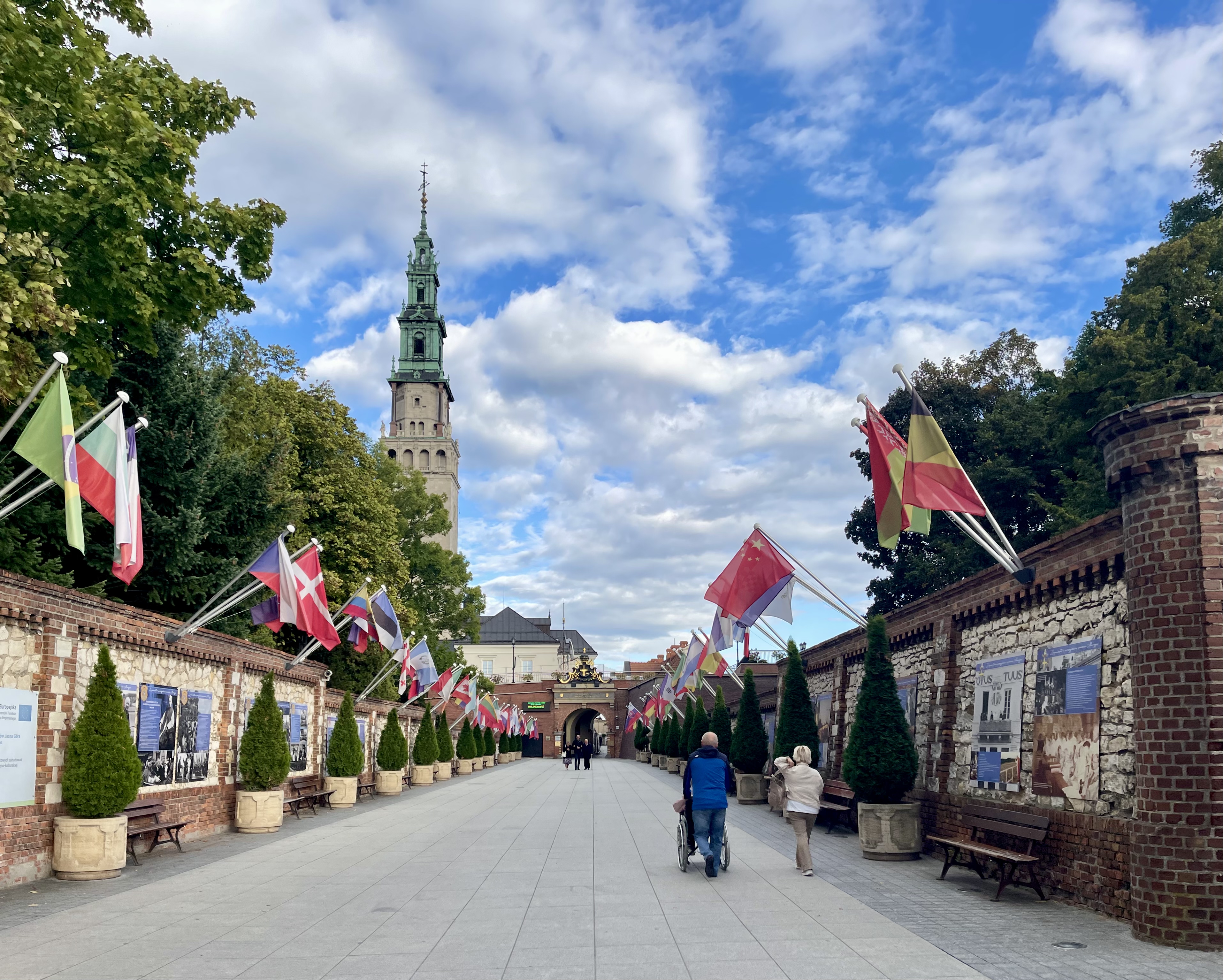 Höhepunkt und Abschluss dieses Tages ist Jasna Góra in Tschenstochau eines der bedeutendsten religiösen und kulturellen Zentren Polens. Es ist ein normaler Wochentag, aber eine große Pilgerschar bevölkert das Klostergelände. Anziehungsmagnet ist die Ikone der Schwarzen Madonna – ihr dunkles Gesicht verdankt sie der Patina und Jahrhunderten von Kerzenrauch. Spätere Restaurierungen haben diese geheimnisvolle Dunkelheit noch verstärkt, was der Ikone eine fast mystische Ausstrahlung verleiht. Um die Pilger nicht in Ihrer Andacht zu stören konnten wir nur von Ferne einen Blick auf die Ikone werfen.