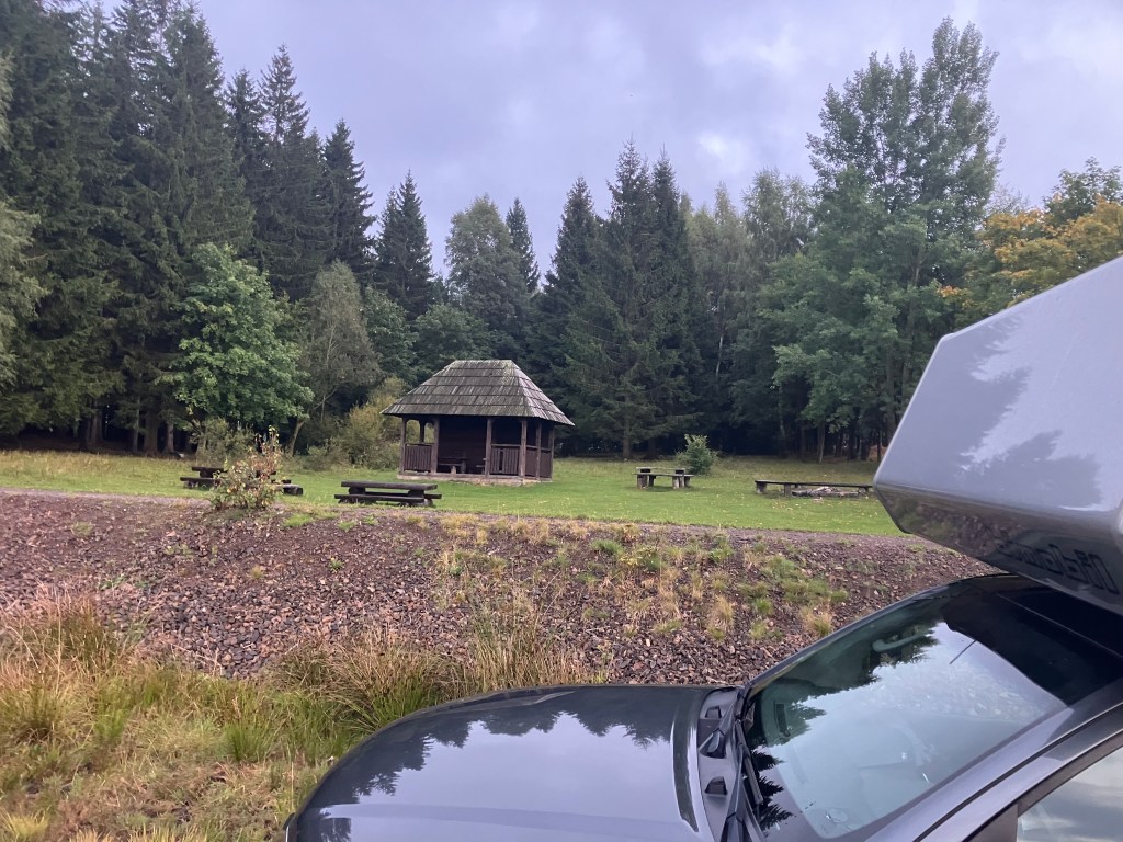 Am Abend fahren wir weiter und übernachten schließlich auf dem Parkplatz der Höhle Jaskinia Łokietka.