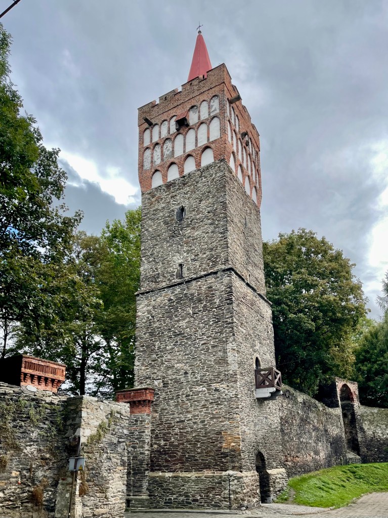 Einem Tipp von ChatGPT folgend fahren wir heute nach Patschkau (Paczkow). Ein Abstecher, der sich absolut lohnt. Die Stadt beeindruckt mit ihrer fast vollständig erhaltenen historischen Stadtmauer aus dem 14. Jahrhundert, zahlreichen Wehrtürmen und dem gut erhaltenen gotischen Stadttor. Besonders interessant ist die Geschichte der Pfarrkirche St. Johannes – einer echten Wehrkirche. Im Kirchenschiff befindet sich ein Brunnen aus dem Jahr 1538, angeblich der einzige seiner Art innerhalb einer Kirche in Europa. Ein weiteres Highlight ist die Besteigung eines Turms der Stadtmauer – den Schlüssel gibts am Kiosk -, von dem man einen wunderbaren Blick über die Altstadt hat.