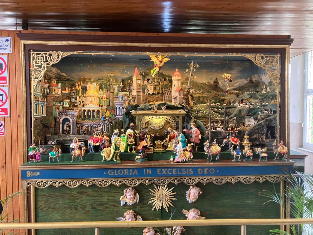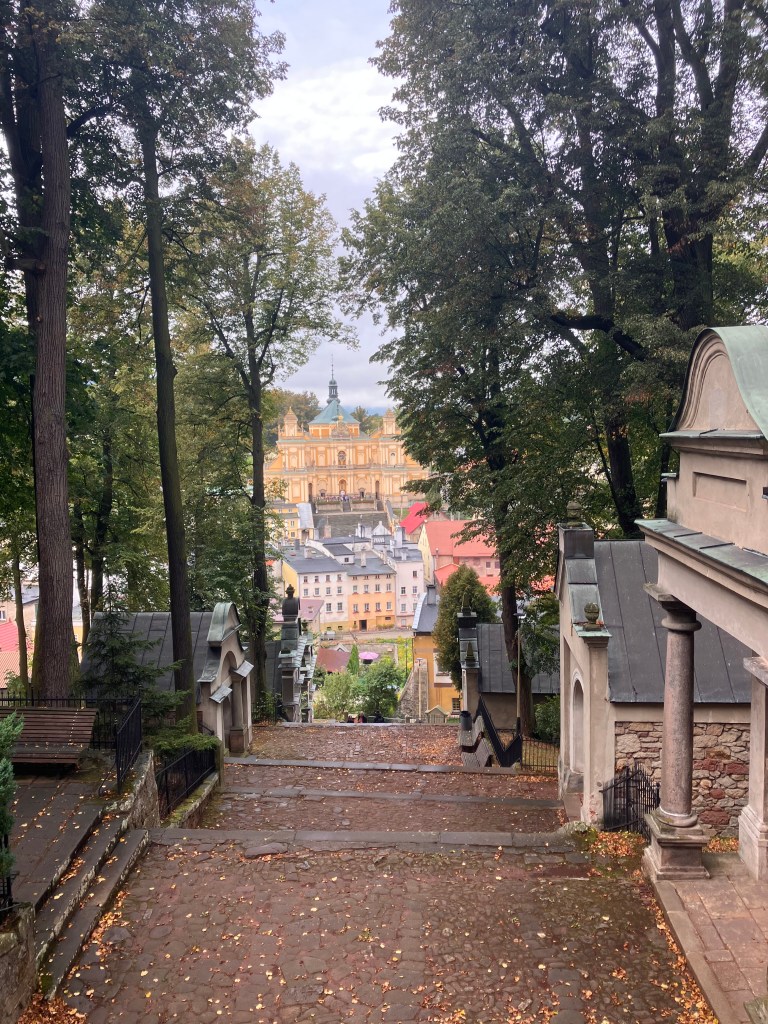 Die Landschaft des Eulengebirges begleitet uns noch ein Stück auf dem weiteren Weg in den nahegelegene Marienwallfahrtsort Wambierzyce, dem früheren Albendorf, der auch als als „Schlesisches Jerusalem“ bezeichnet wird. Der eindrucksvolle Barockbau der Basilika Mariä Heimsuchung – erbaut im 17. und 18. Jahrhundert – ist über eine monumentale Freitreppe erreichbar und prägt das Ortsbild. Von dort spazieren wir hinauf auf den Kalvarienberg, die Kreuzwegstationen sind mit lebensgroßen Figuren bestück und so sehr eindrucksvoll. Ein stimmungsvoller Weg der Besinnung und Einkehr. Von oben bietet sich ein schöner Blick auf die Basilika und den Ort. Anschließend schauen wir noch in das kleine Museum mit der „beweglichen Krippe“. Dieses außergewöhnliche Werk wurde im 19. Jahrhundert von dem Künstler Longin Wittig und seinem Sohn Hermann geschaffen.