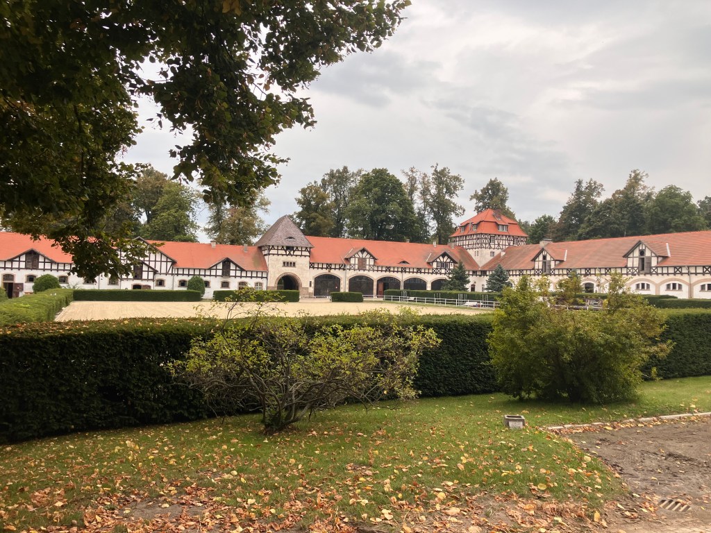 Nach dem Abendessen besuchen wir noch das dazugehörige Gestüt und laufen durch die riesigen Pferdeställe. Wir dürfen auf dem großen Parkplatz übernachten.