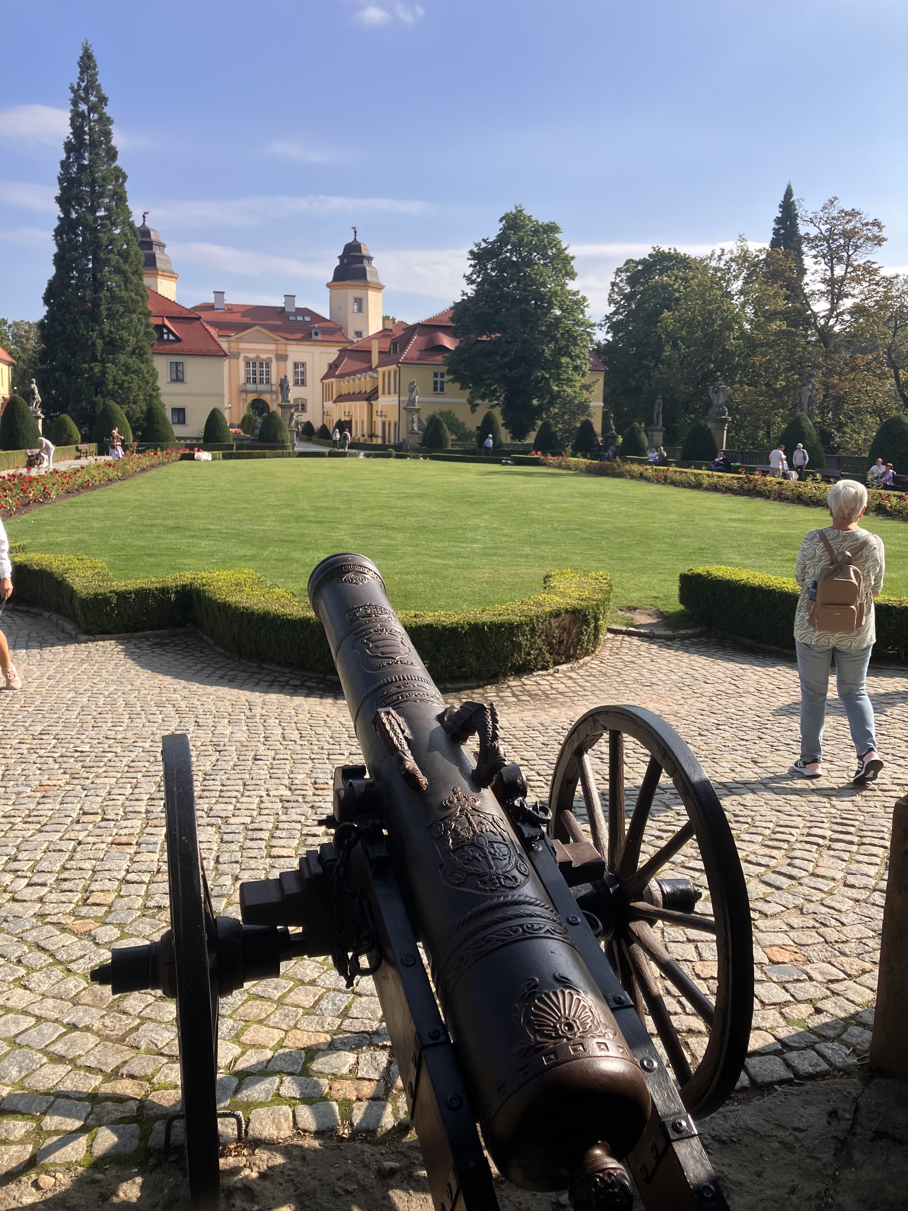 Zurück an der Oberfläche legen wir eine kurze Mittagspause ein. Danach erkunden wir mit dem Audioguide die wunderschönen, hervorragend restaurierten Schlossräume und schlendern anschließend durch die Gärten. Alles ist bestens gepflegt und befindet sich in nahezu perfektem Zustand