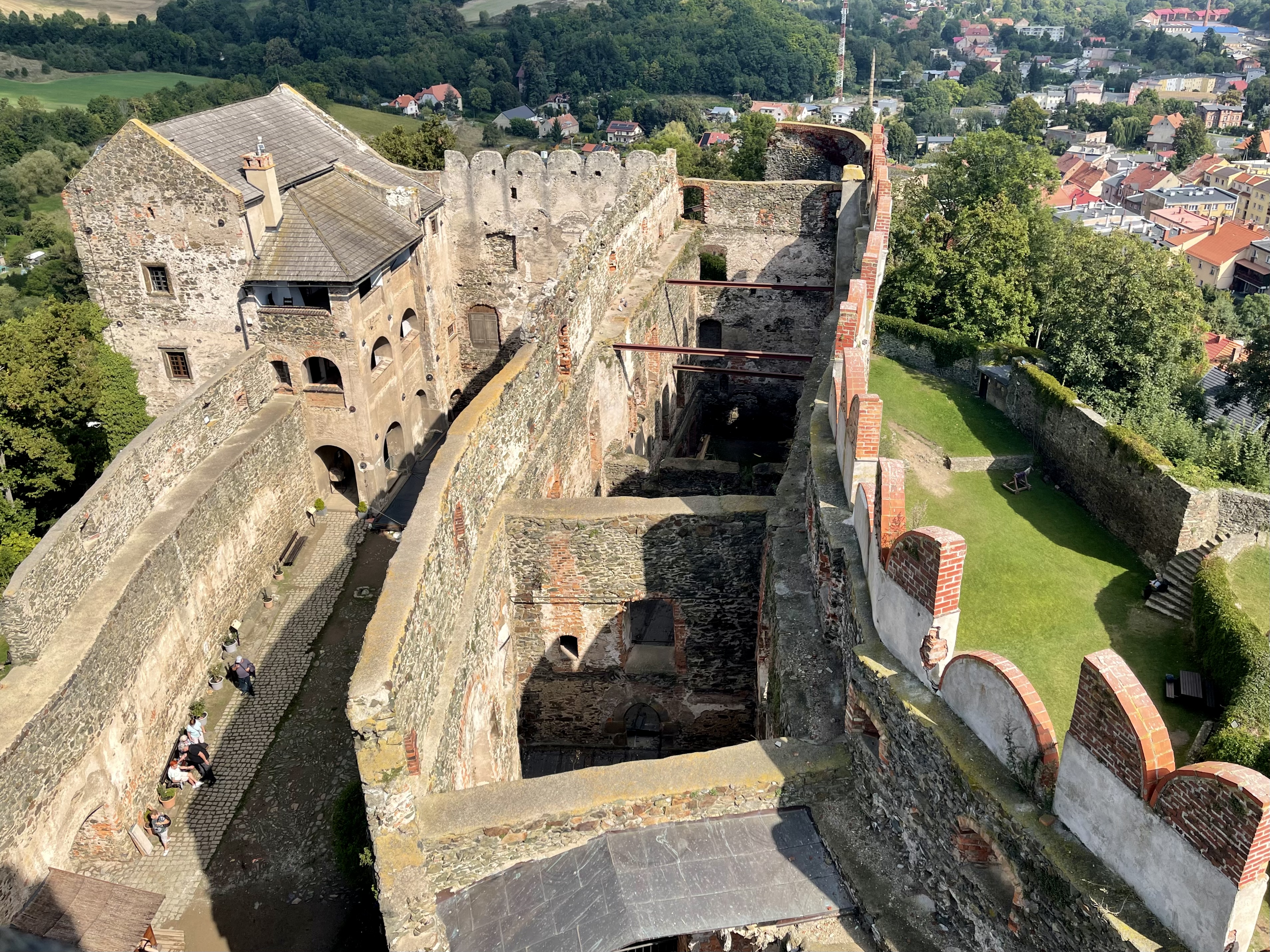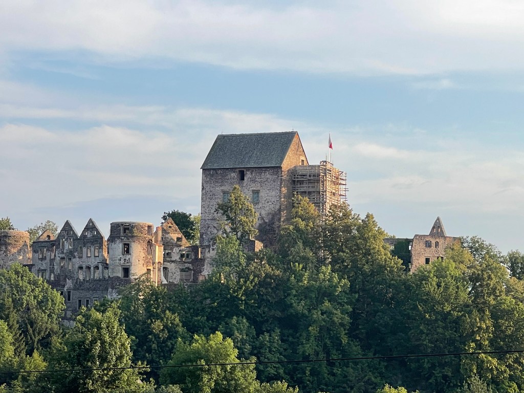 Die Ruine von Burg Świny, erstmals 1108 erwähnt, liegt in Sichtweite. Sie verlor im 13. Jahrhundert an Bedeutung zugunsten von Bolków. Wir laufen durch die alten Mauern, spürte die Jahrhunderte unter den Füßen und stellen uns Ritter, Händler und Burgfrauen vor – ein richtiger Mittelaltermoment. Beide Burgen werden heute touristisch genutzt.
